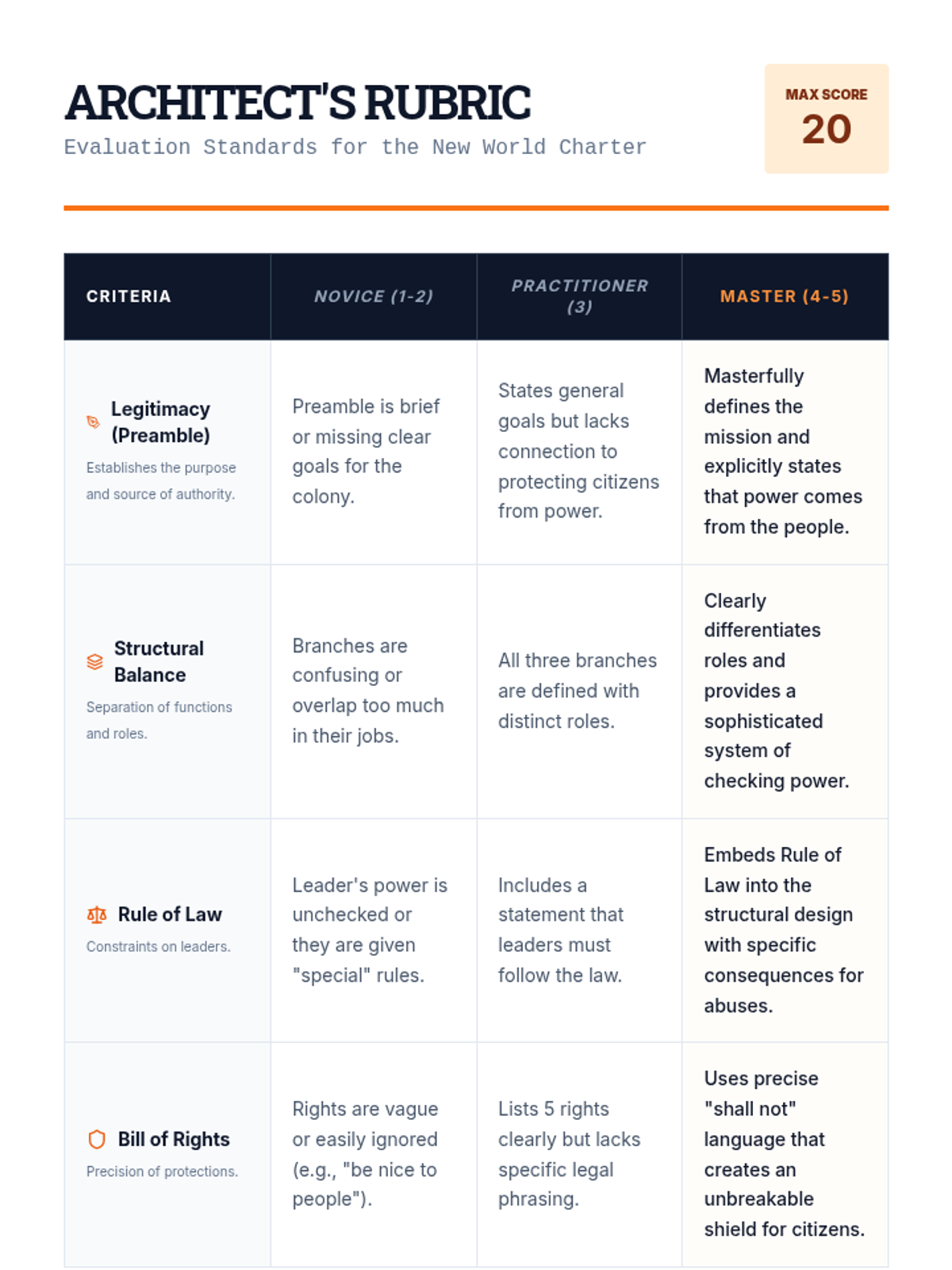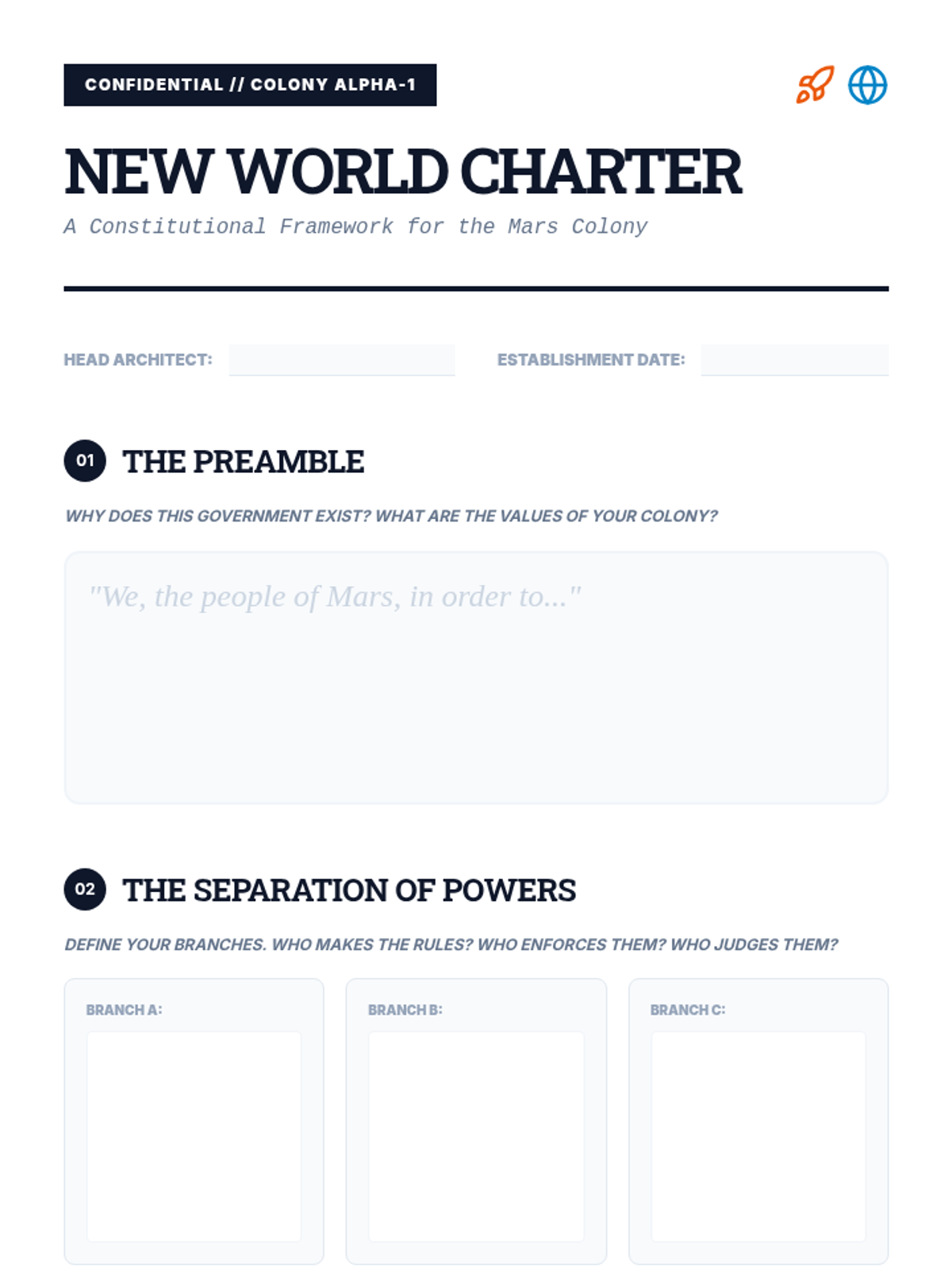 The capstone project where students apply their knowledge to draft a constitution for a new society on Mars.