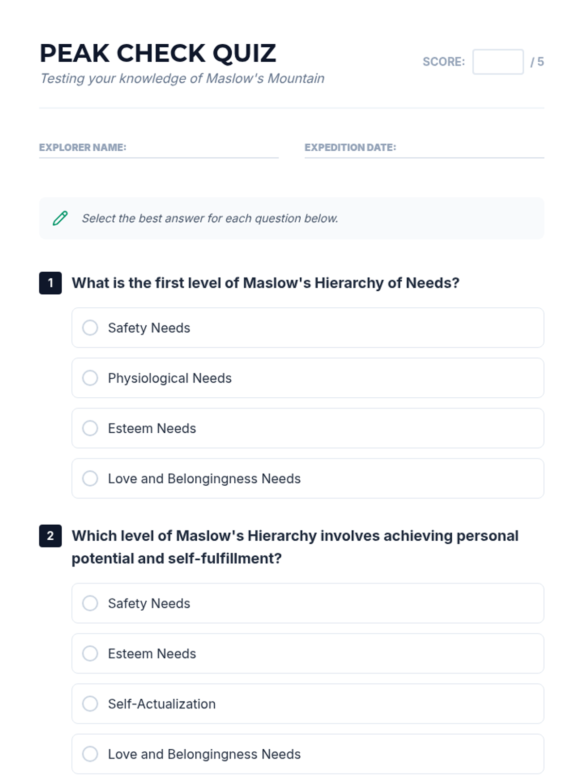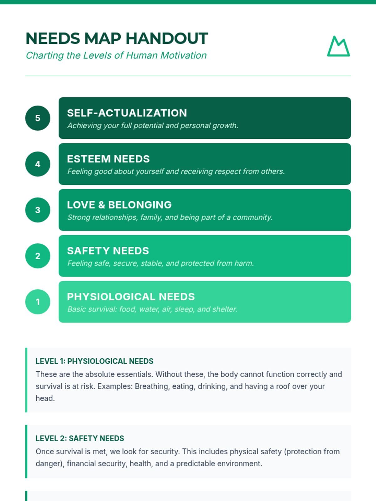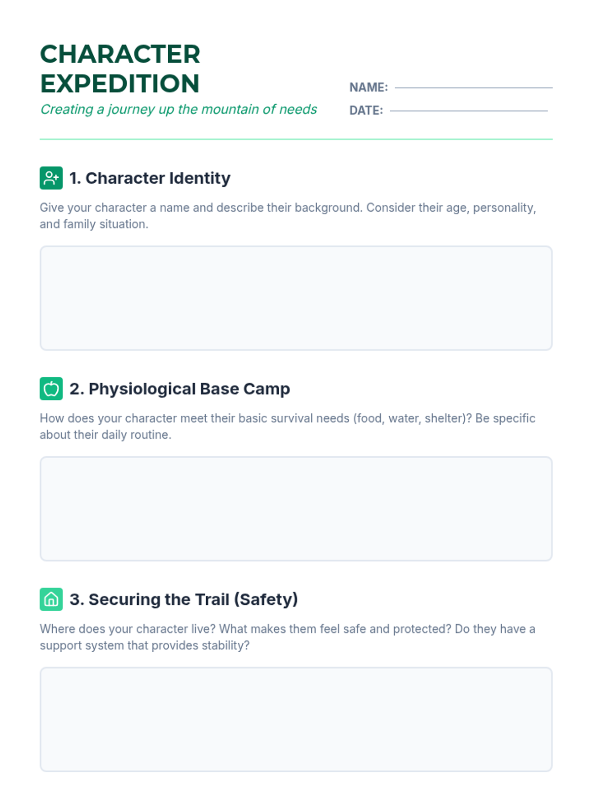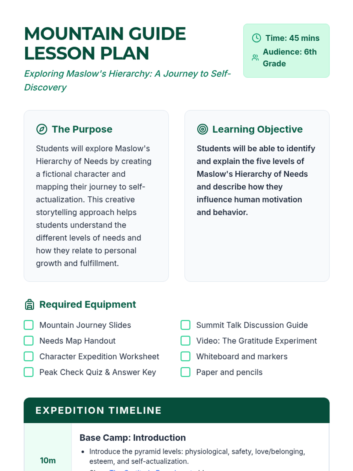 Students explore Maslow's Hierarchy of Needs by creating a fictional character and mapping their journey to self-actualization. This creative approach fosters empathy and a deep understanding of human motivation and personal growth.