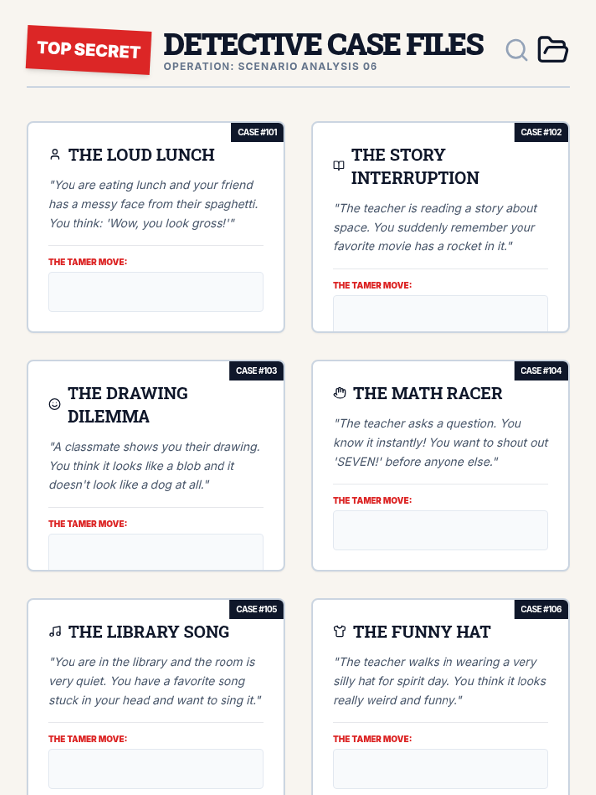 Using detective skills to analyze complex scenarios and determine the best 'Thought Tamer' move.