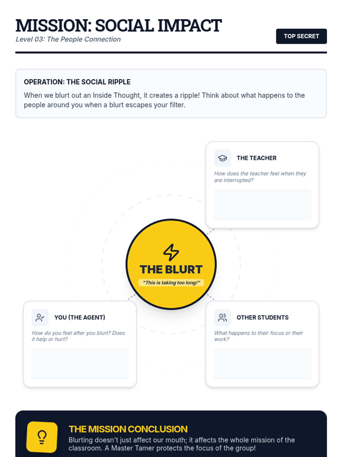 Exploring how blurting affects friends and teachers, focusing on the social consequences of the 'Outside' thought.