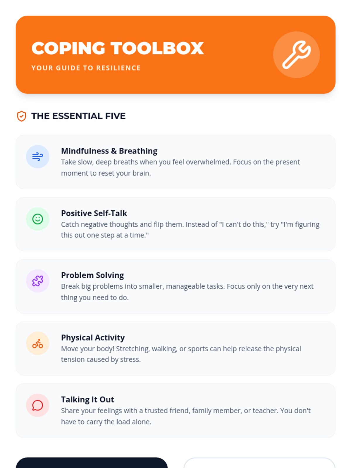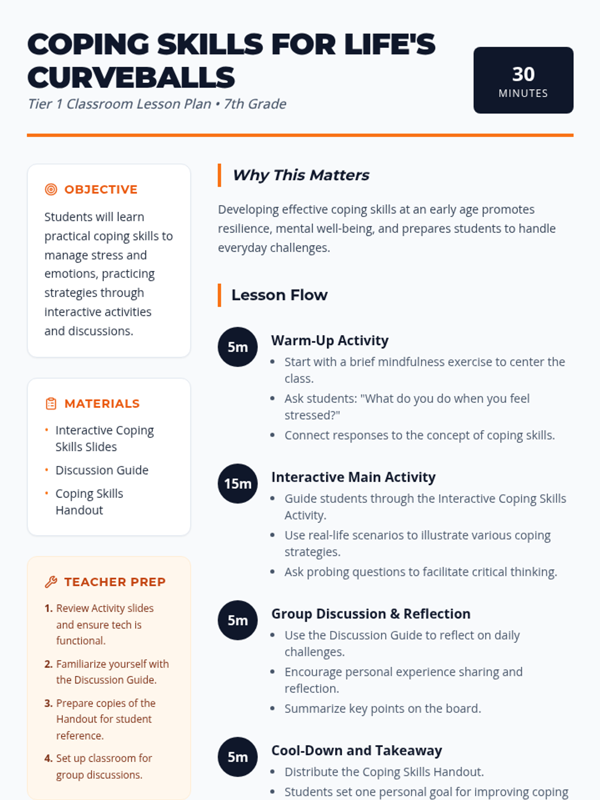 A 30-minute Tier 1 lesson for 7th graders focused on developing resilience through practical coping strategies for managing stress and navigating daily challenges.