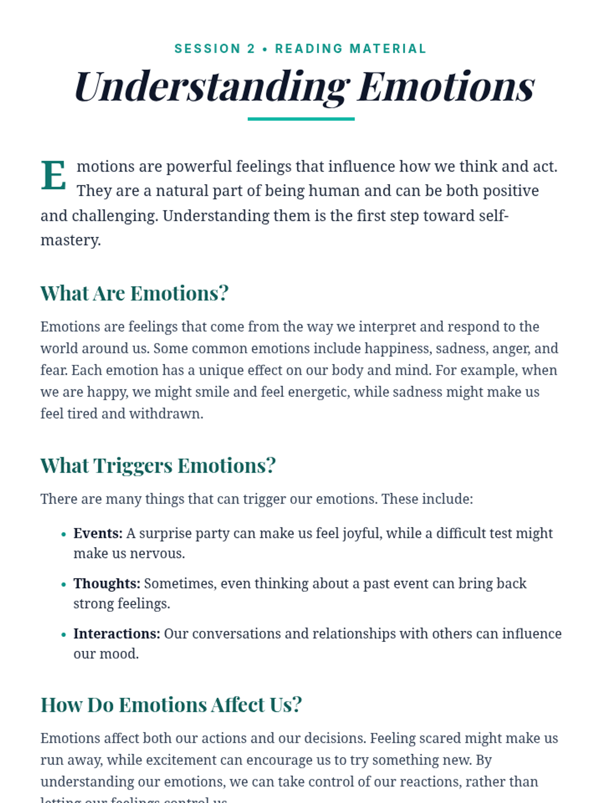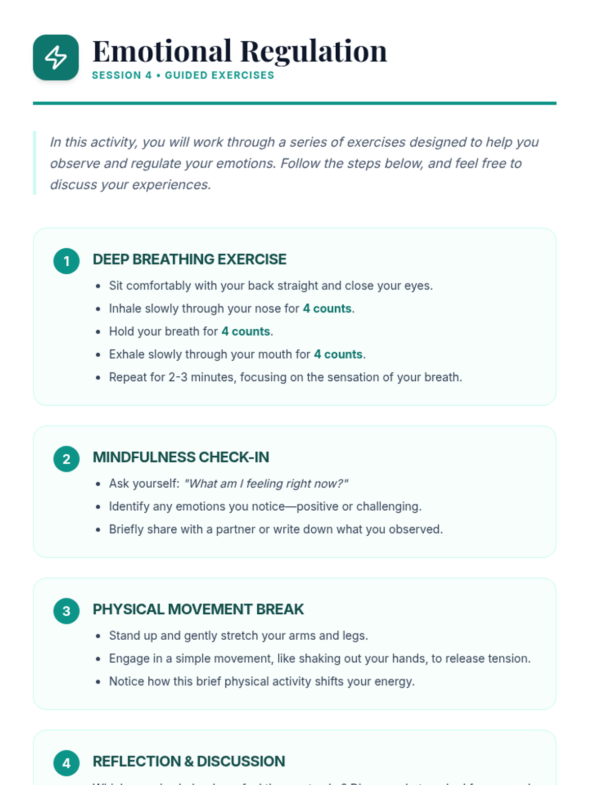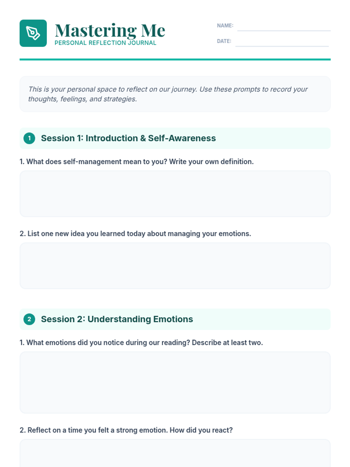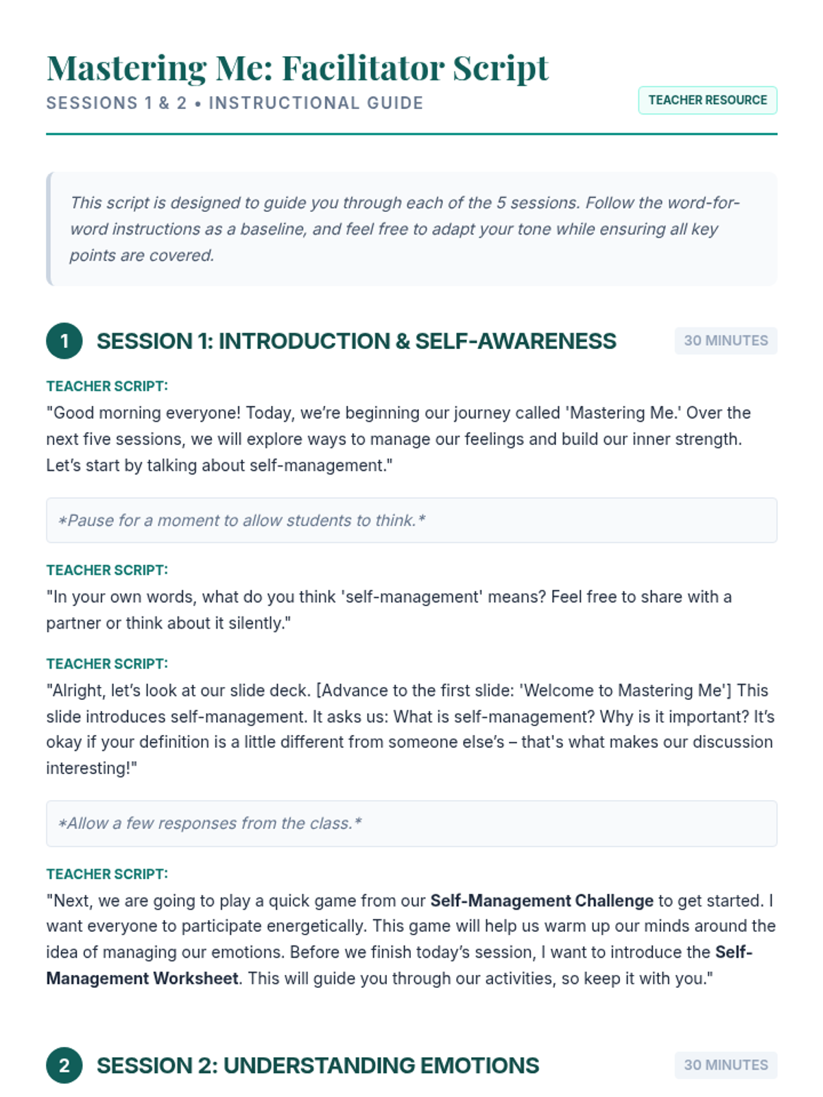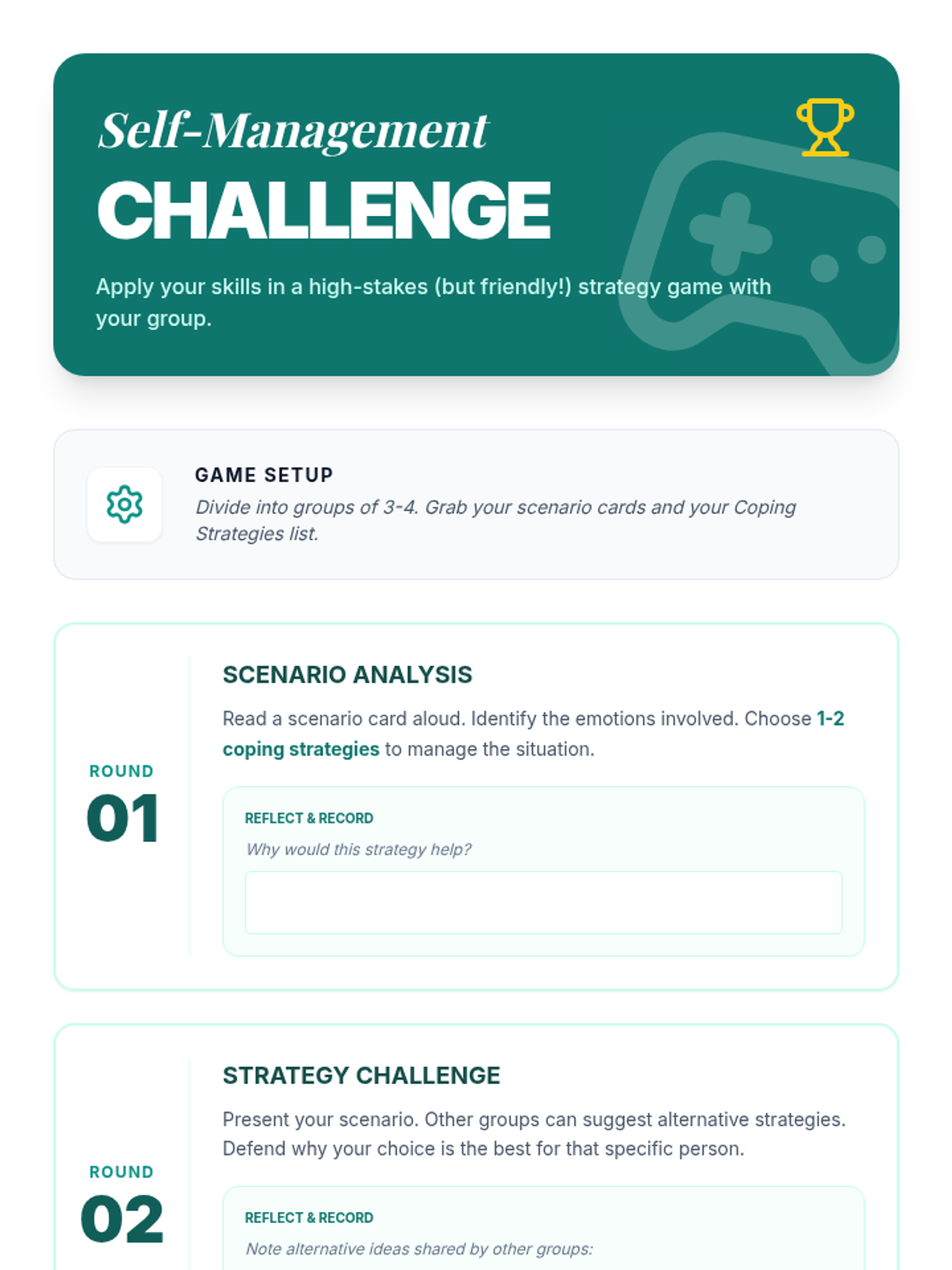 A 5-session Tier 2 group lesson designed to empower students with self-management skills to navigate anxiety, depression, and complex emotions through interactive discussions and activities.