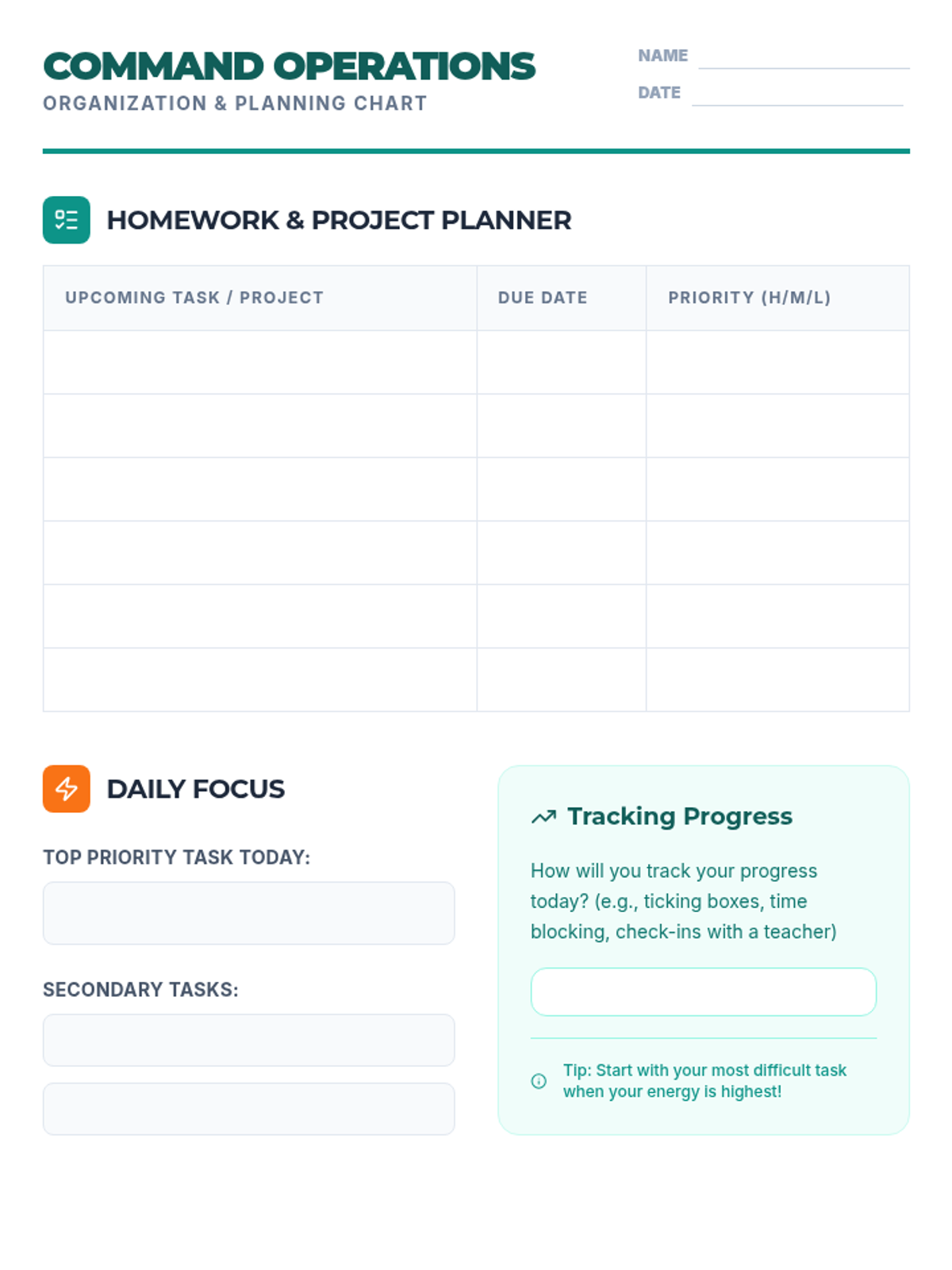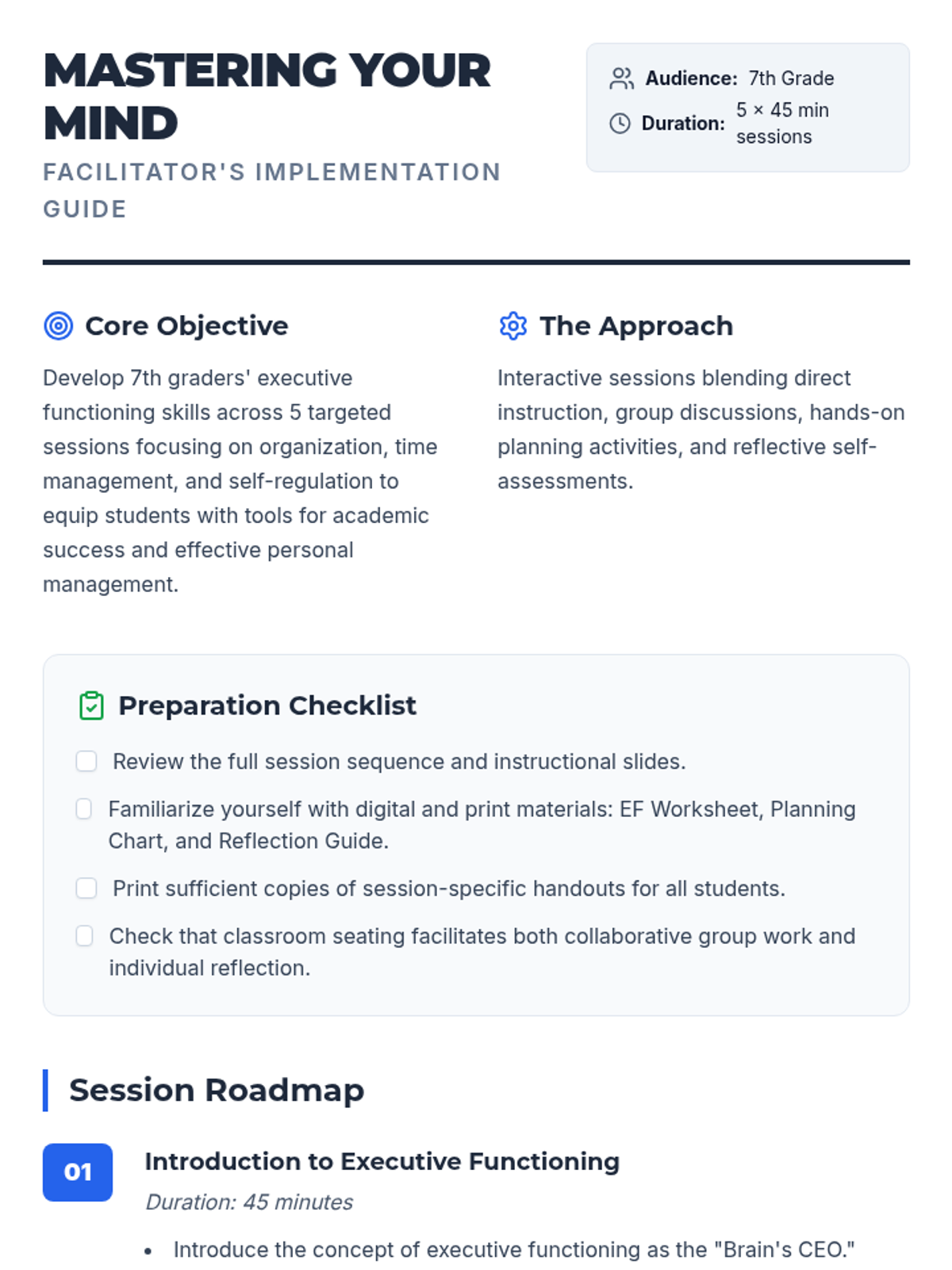 Focuses on developing organizational skills and introduces tools for planning homework and projects effectively.