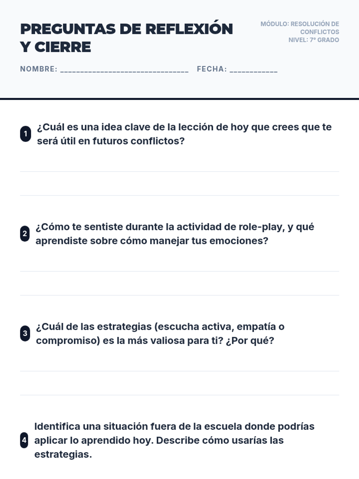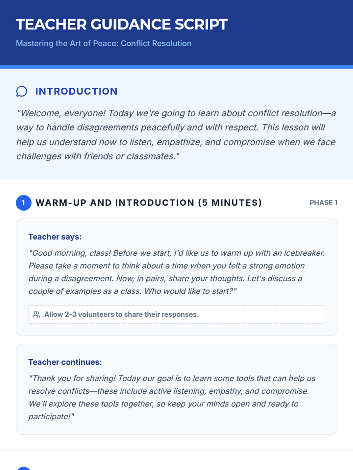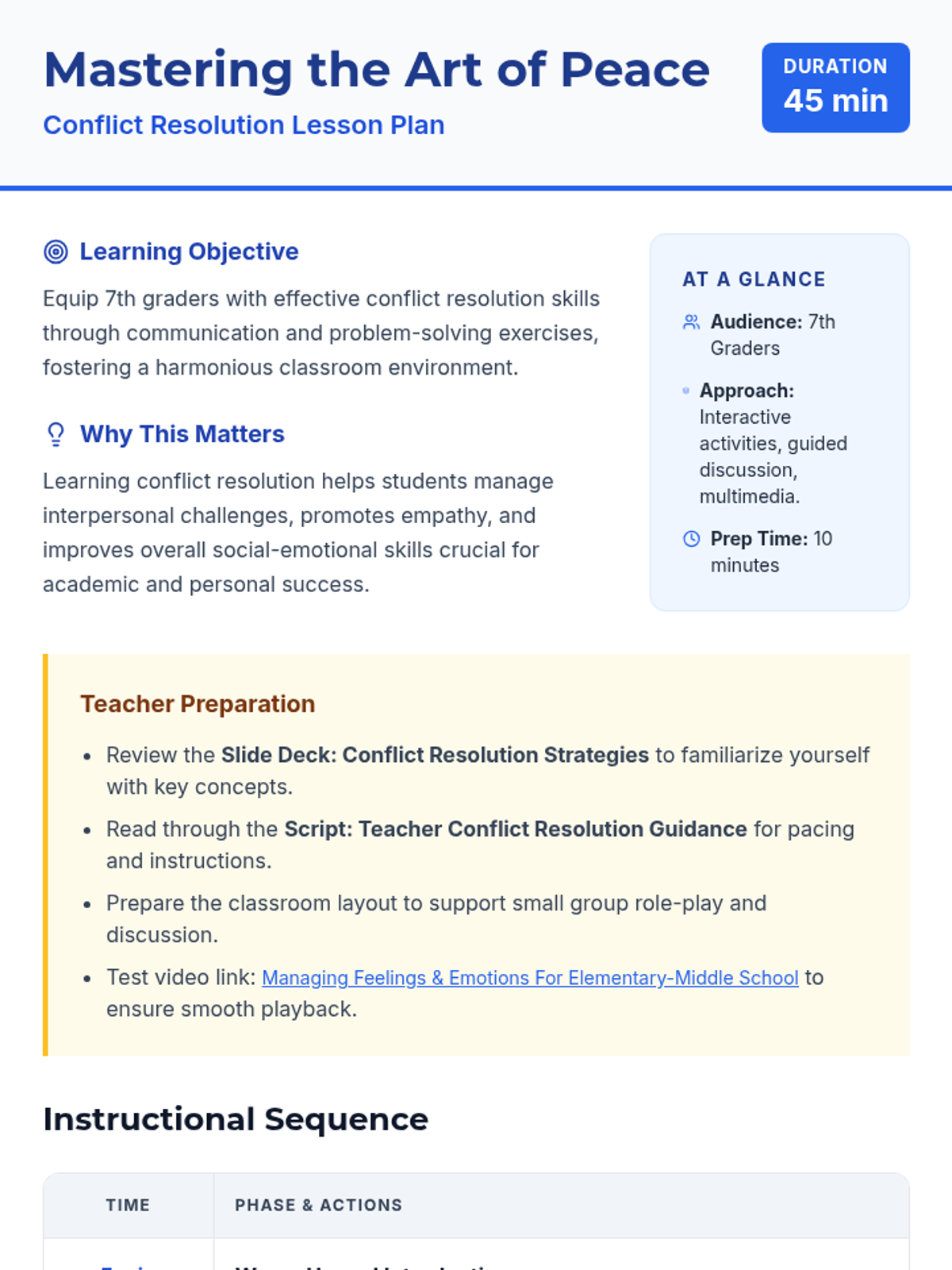 This engaging lesson equips 7th graders with essential conflict resolution skills including active listening, empathy, and compromise. Through interactive role-play and guided discussion, students learn to handle interpersonal challenges constructively to foster a harmonious classroom.