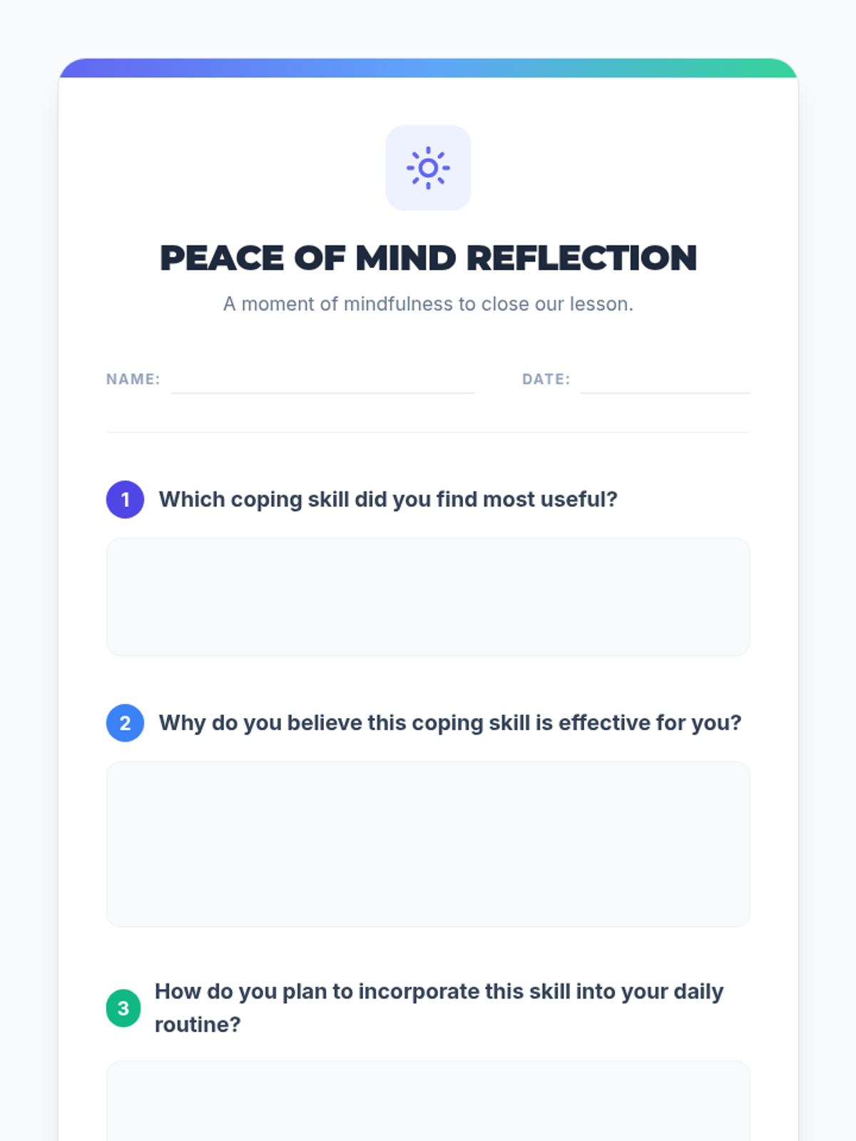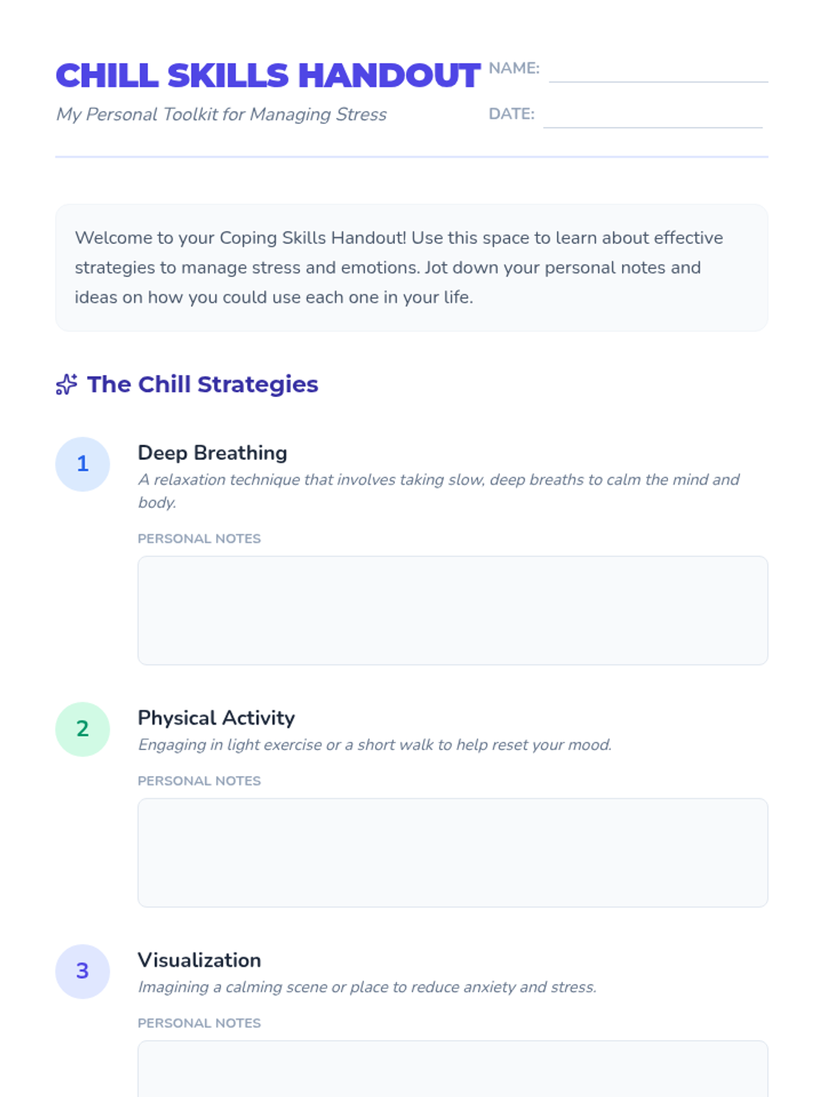Reviewing various coping skills and creating a personalized 'Survival Kit' for future use.