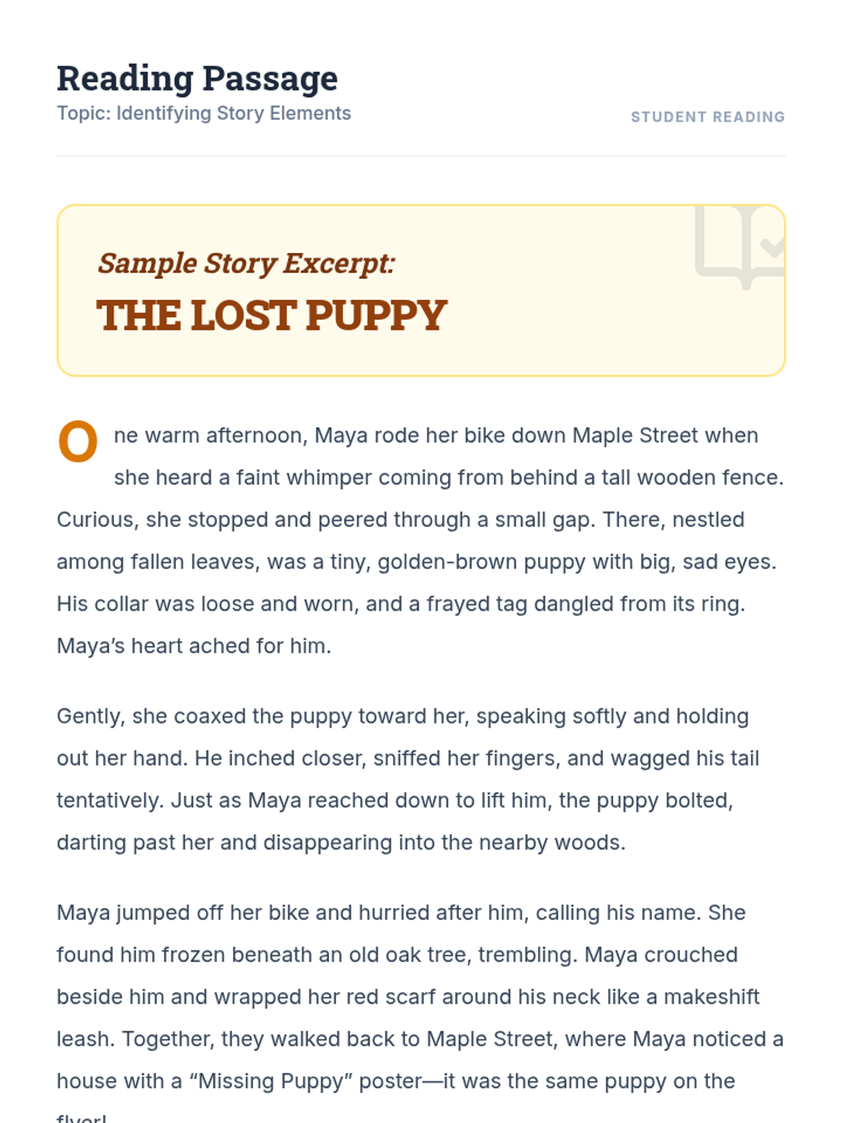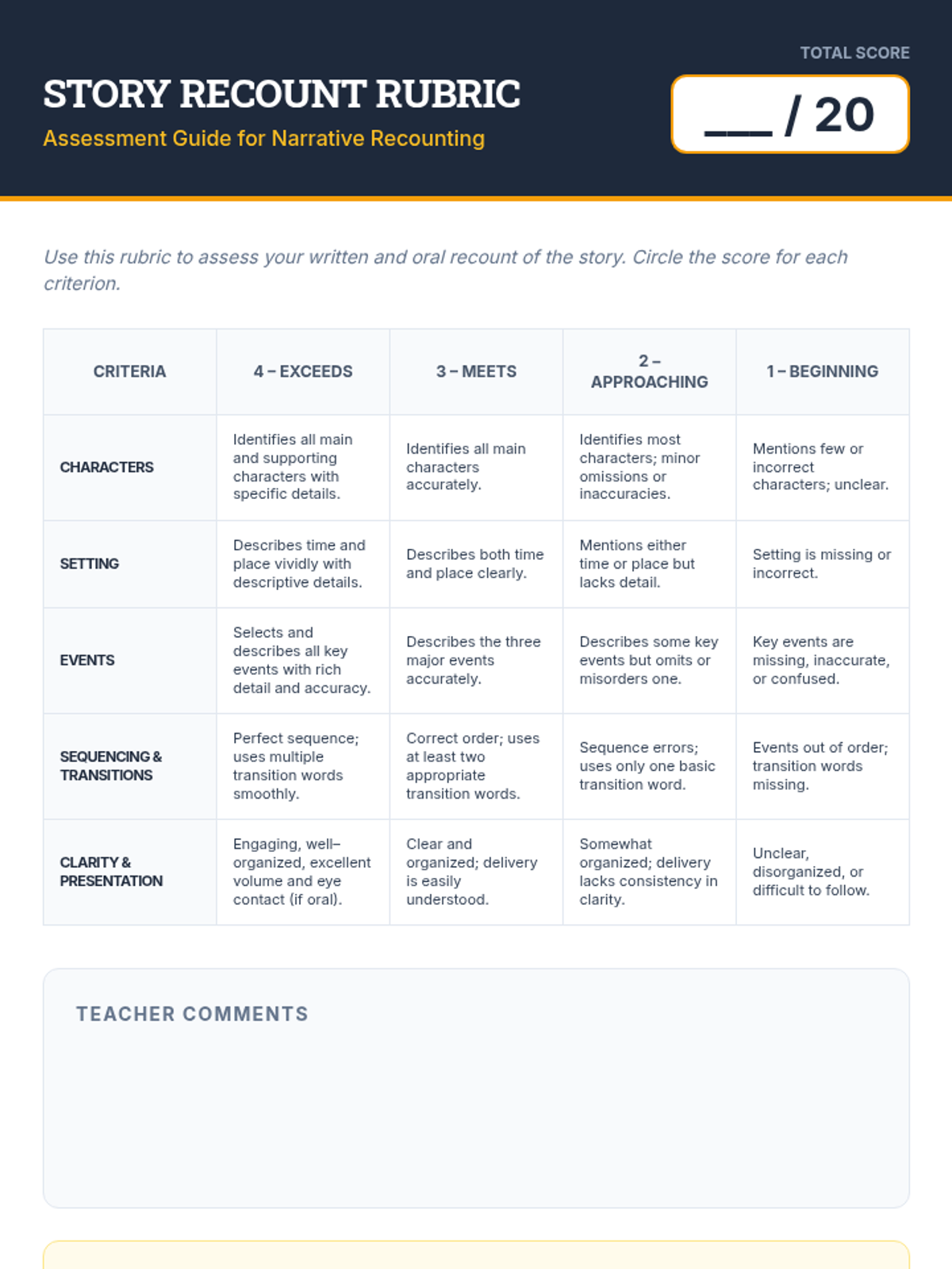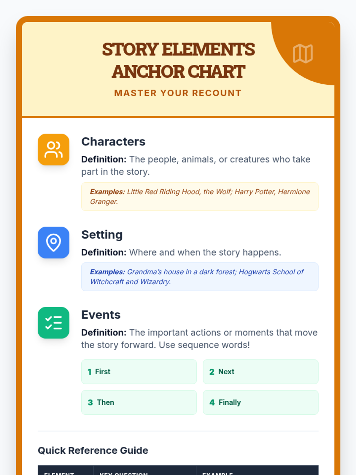 A 30-minute session for 7th graders focusing on analyzing story excerpts to identify complex characters, settings, and sequences of events. Students will practice transforming notes into structured oral and written recounts.