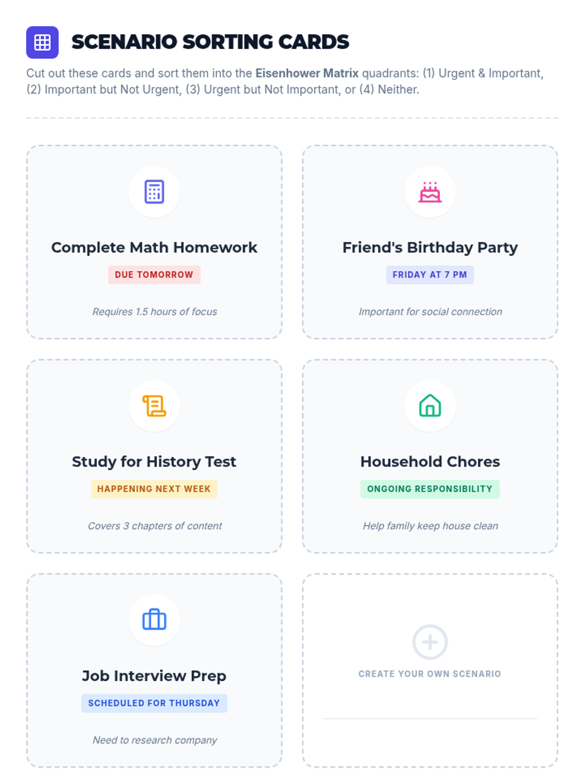 Students will explore a variety of sensory and cognitive coping strategies. They will evaluate which techniques work best for them and begin building their personal 'Coping Menu'.