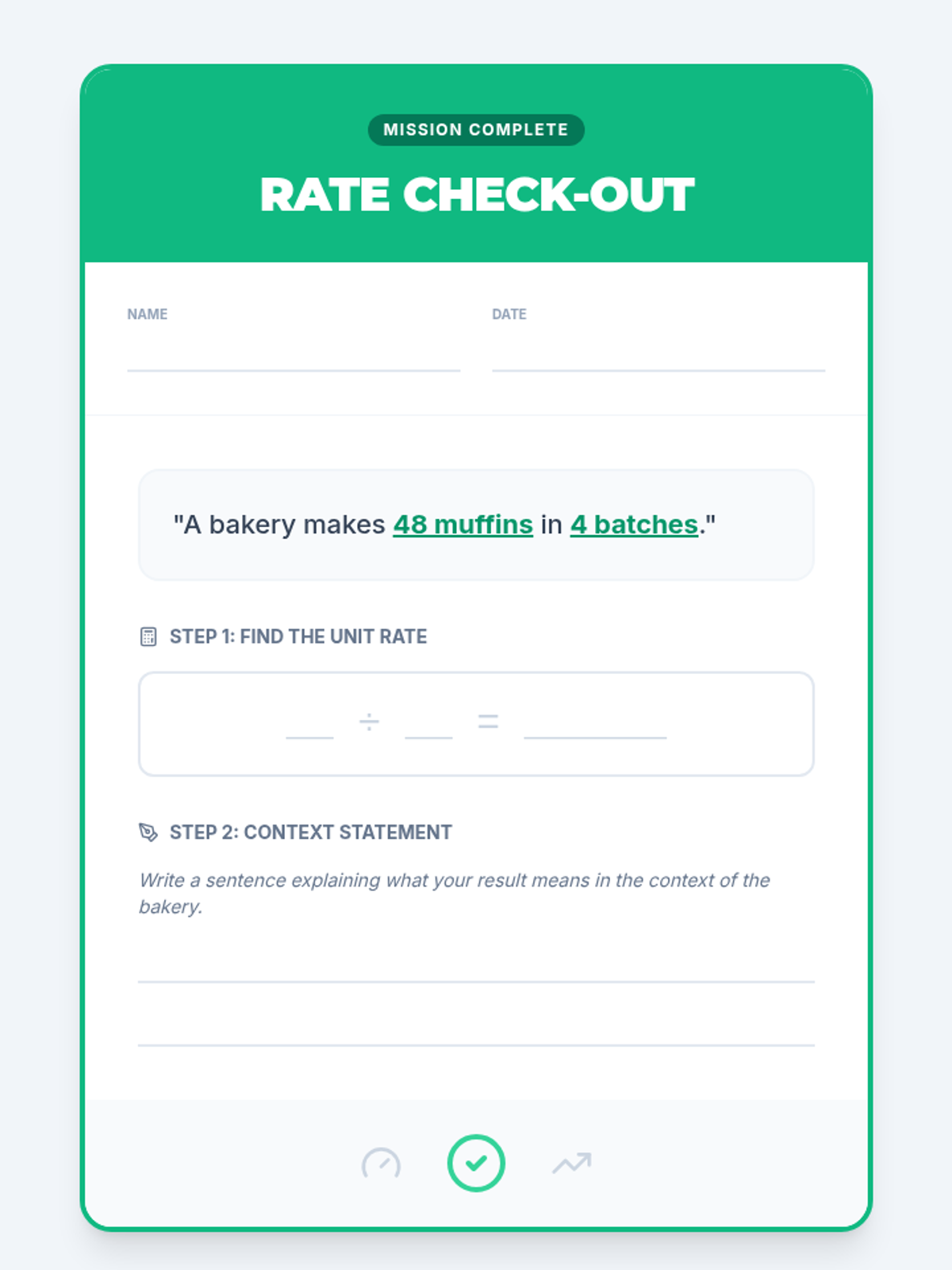 Introduction to proportions and solving one-step equations through cross-multiplication. Real-world contexts include recipe scaling and unit rates. (Task 1)