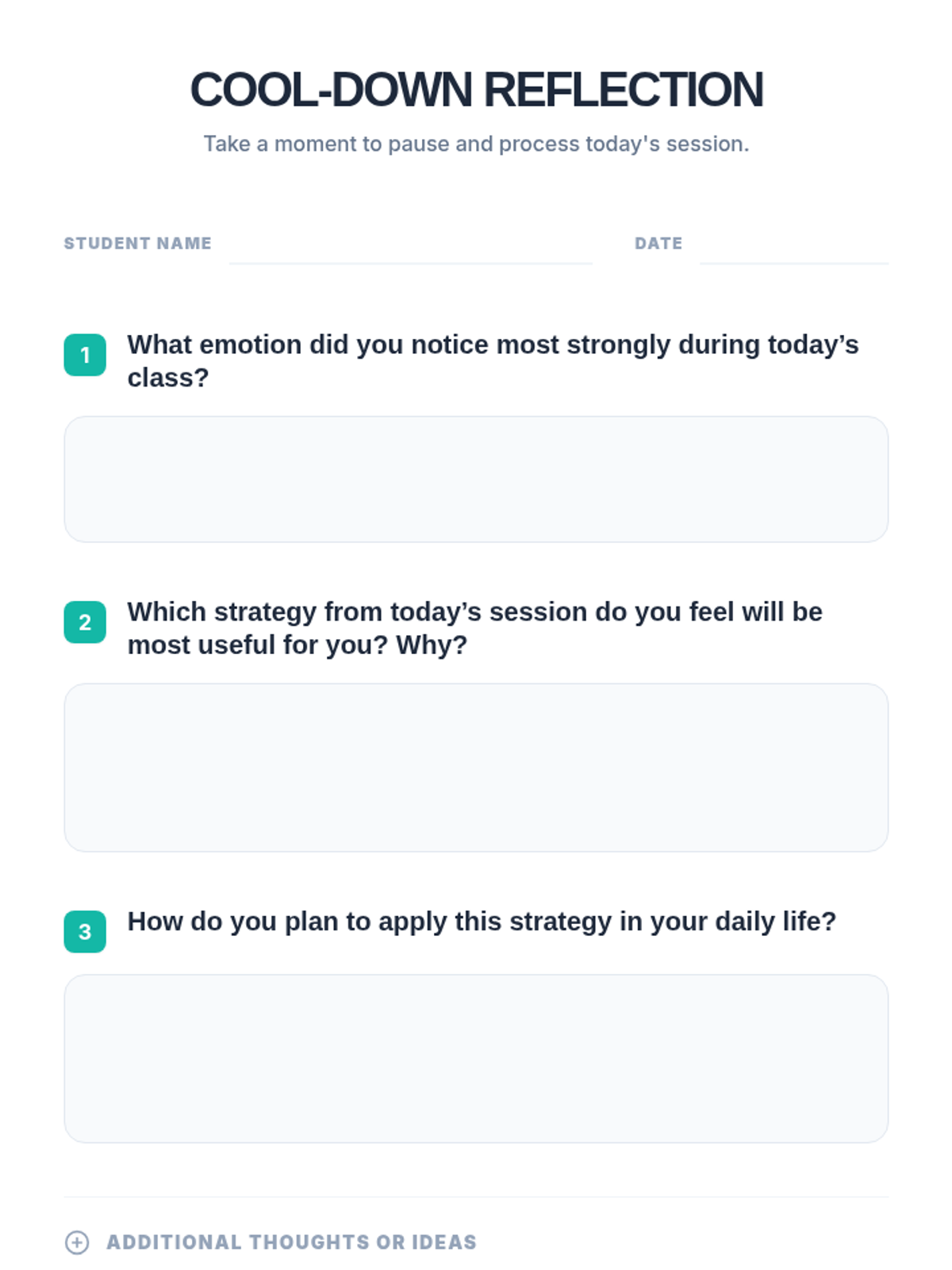 Teaches emotional regulation through the Notice-Name-Breathe method and building a resilience toolkit.