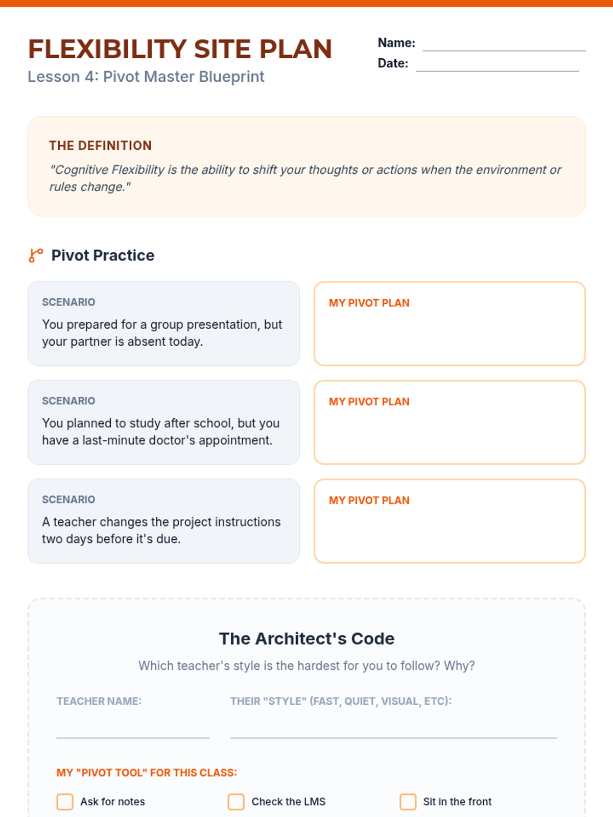 Developing cognitive flexibility to handle changes in schedules and different teaching styles.