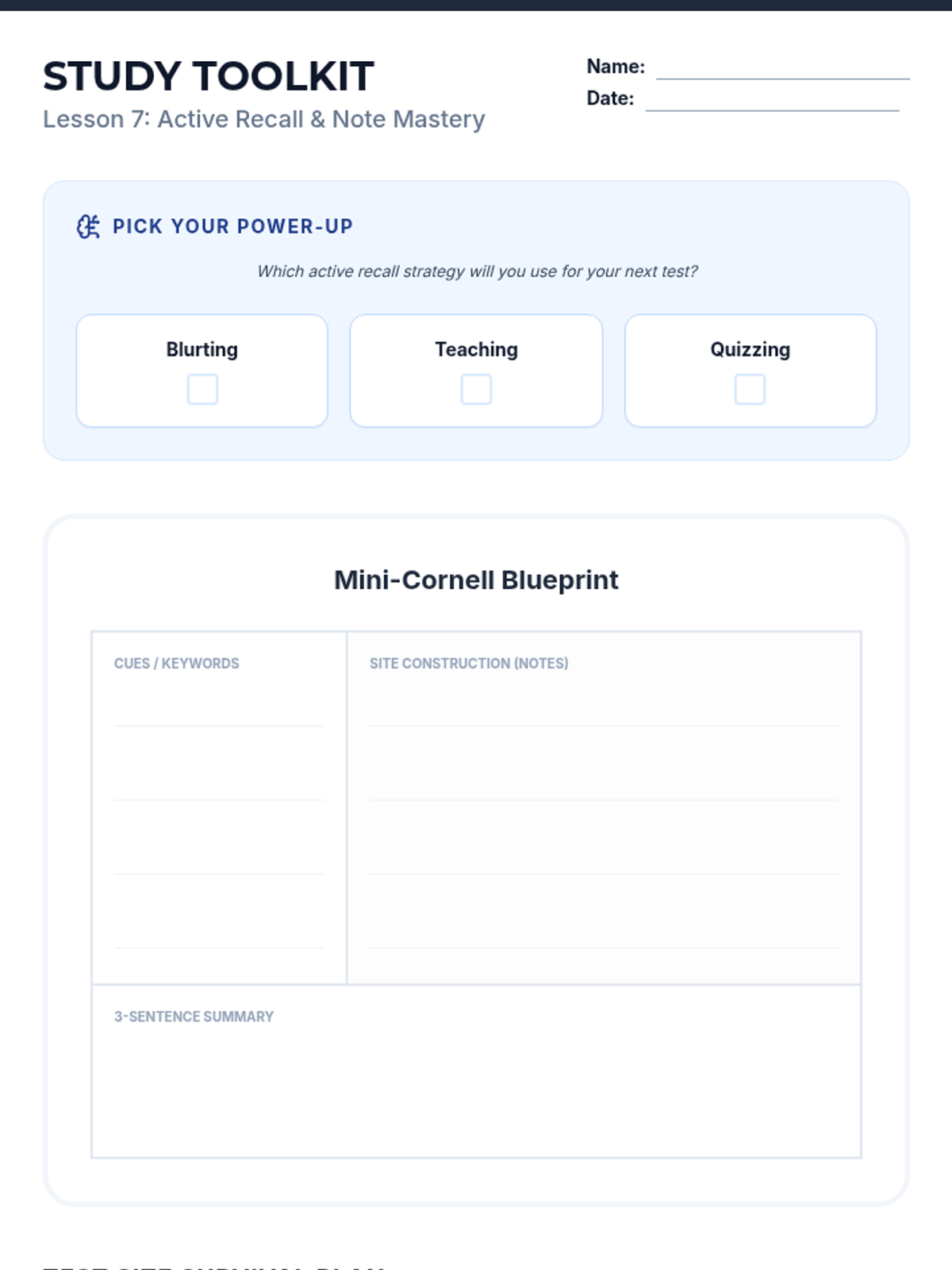 Instruction on effective note-taking and test-taking strategies tailored for middle school.