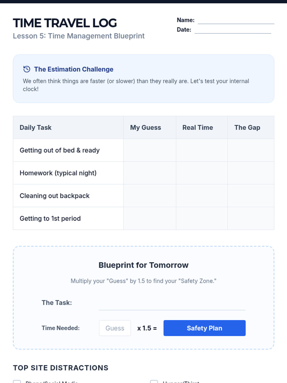 Building an awareness of time and learning how to estimate how long tasks actually take.