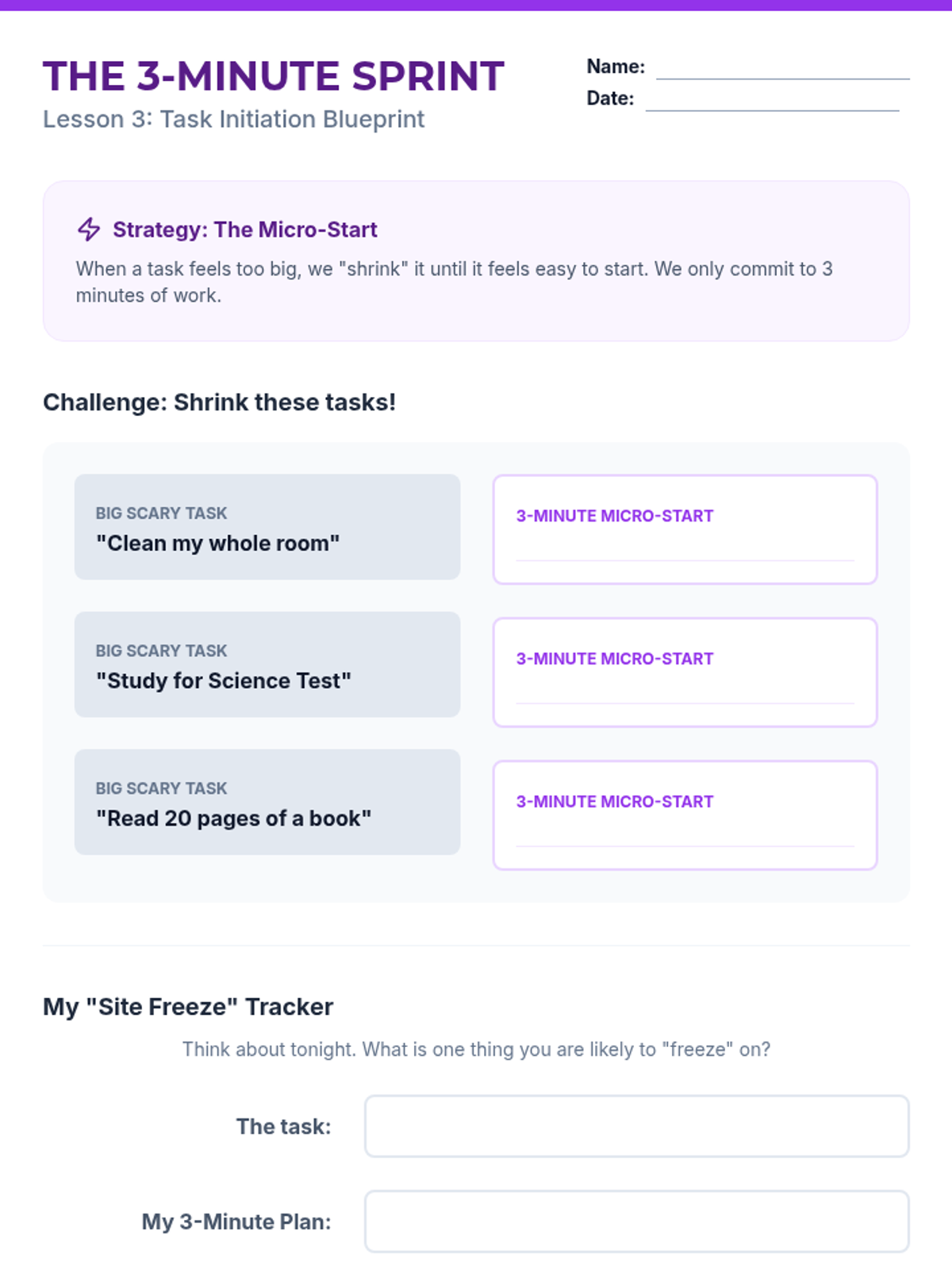 Strategies for overcoming the 'freeze' and getting started on difficult tasks immediately.