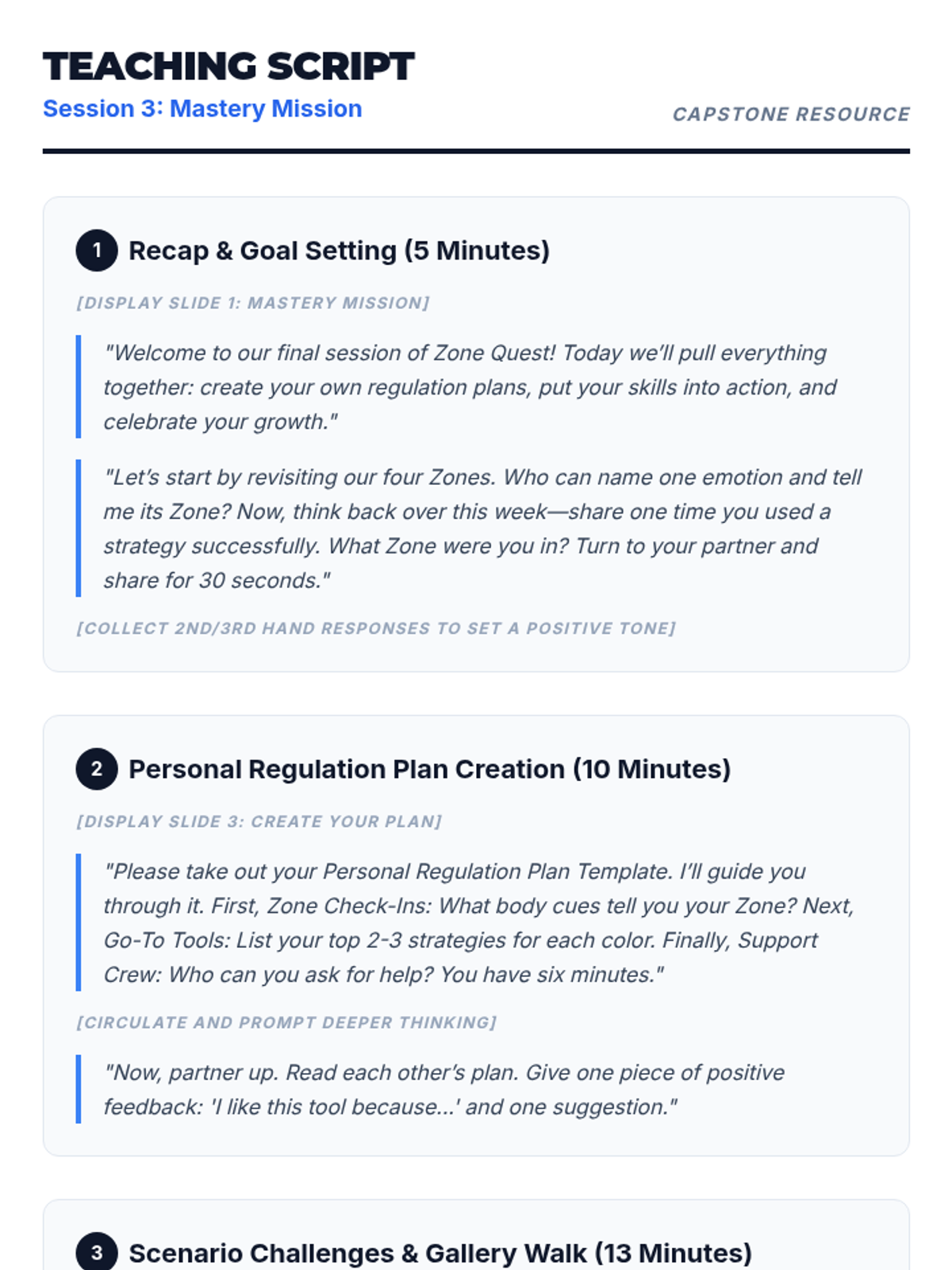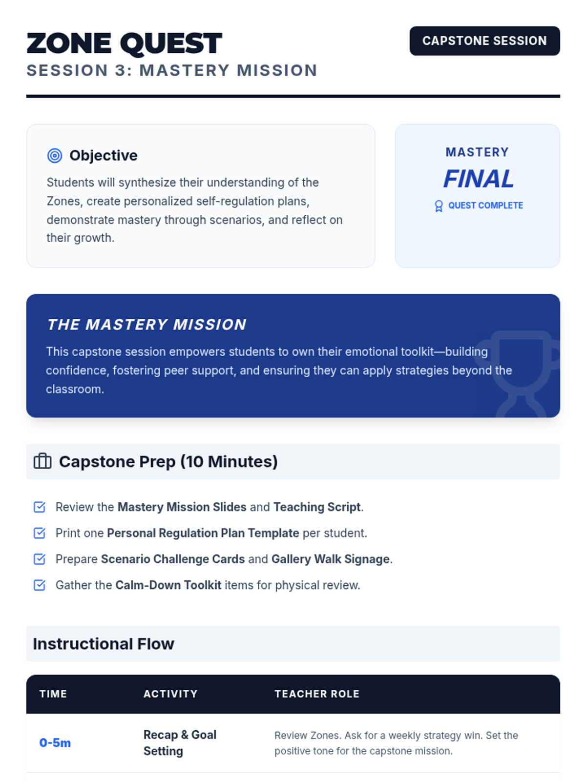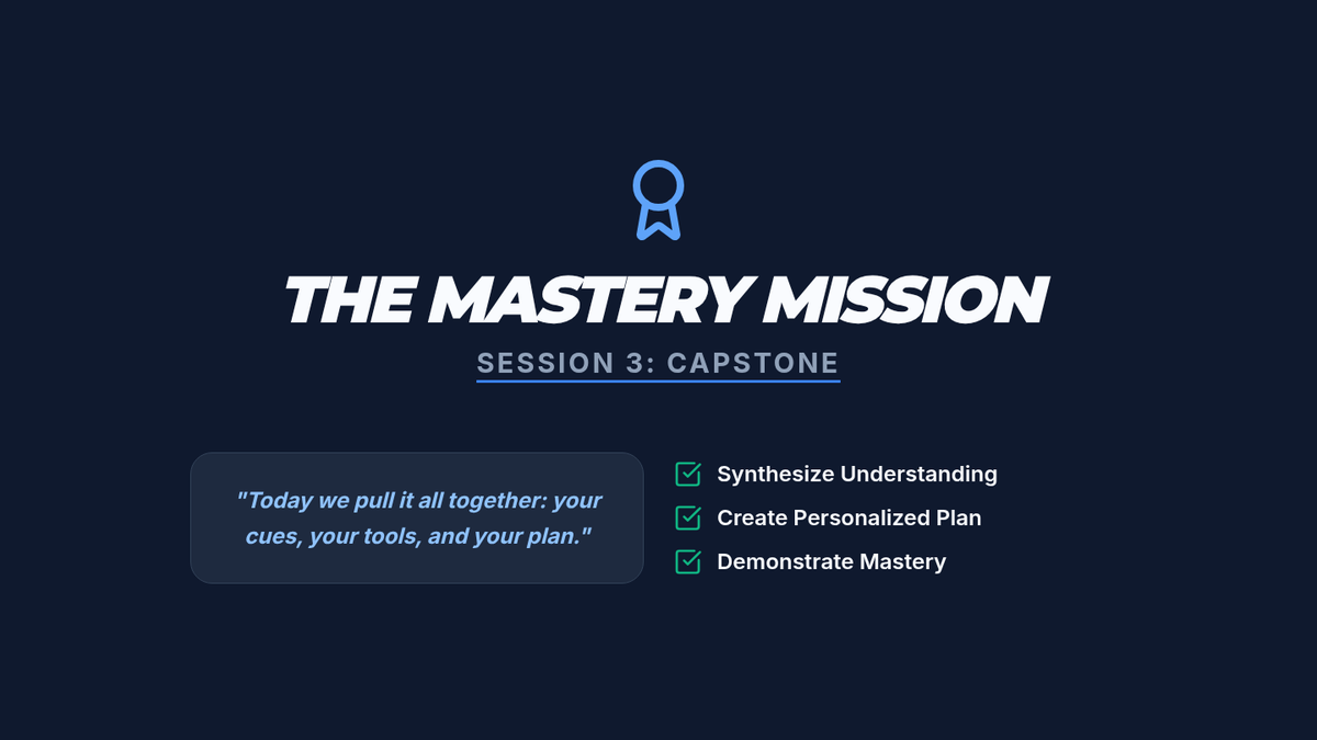 A capstone session where students synthesize their learning into a personal regulation plan and demonstrate mastery through real-world scenarios.