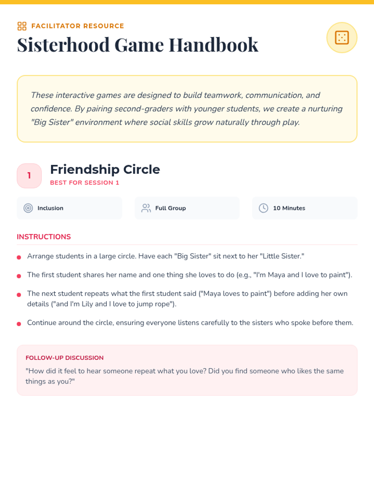 Students are introduced to their partners and begin building a foundation of trust through introductory activities and a primary mentor-mentee game.