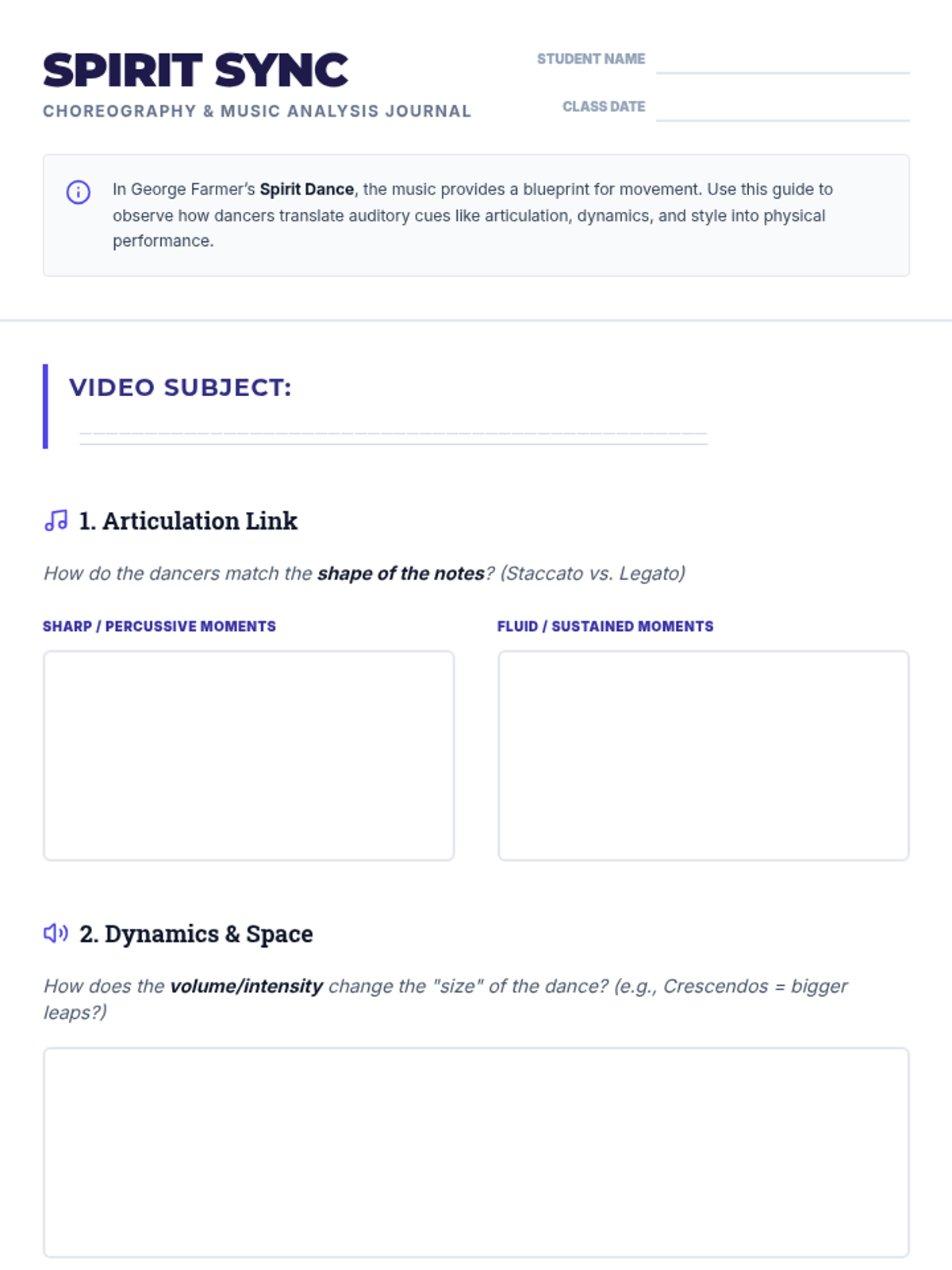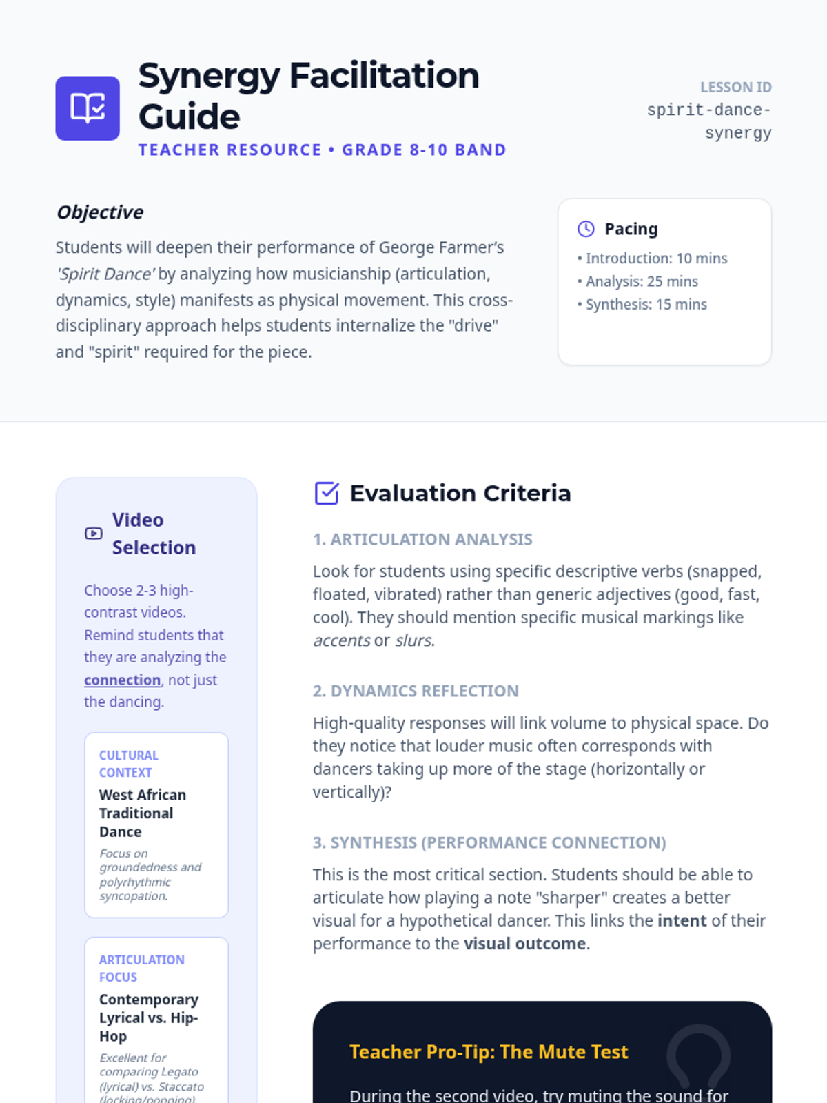 A grade 8-10 band lesson exploring the intersection of music and dance through George Farmer's 'Spirit Dance', focusing on how articulation, dynamics, and style translate into physical movement.