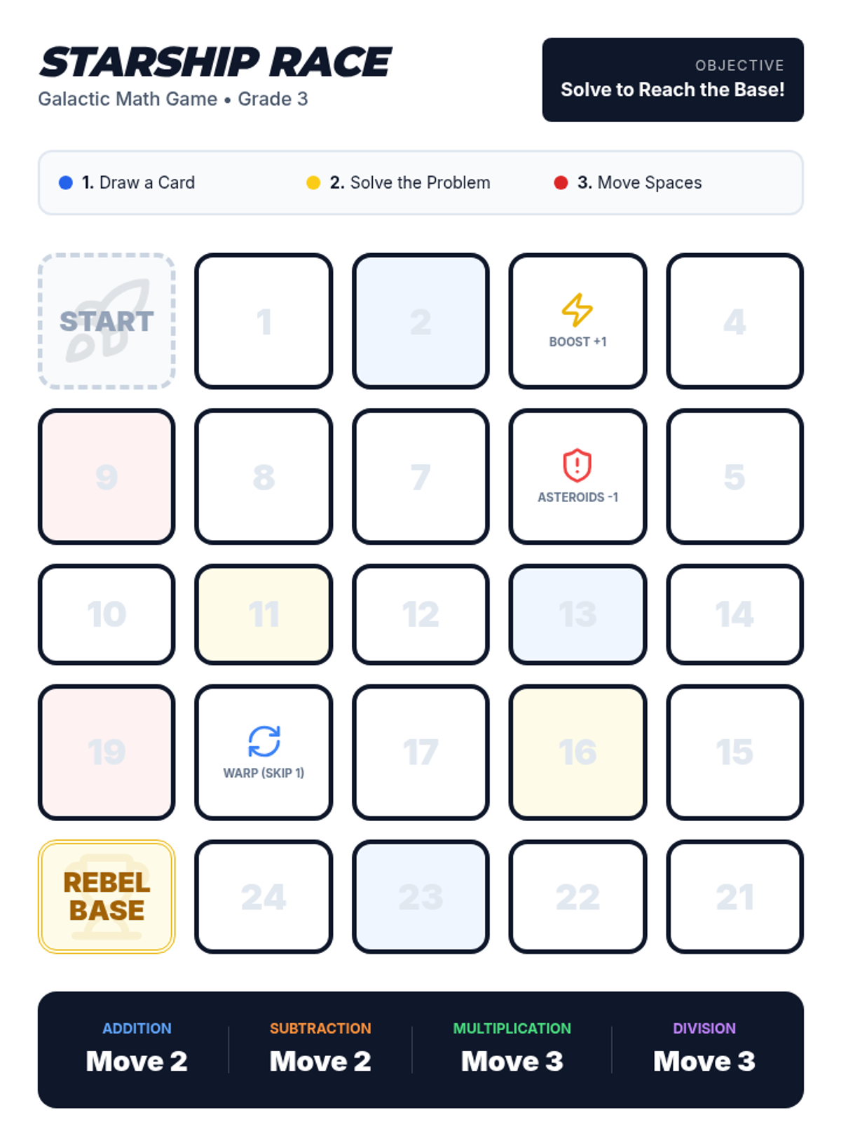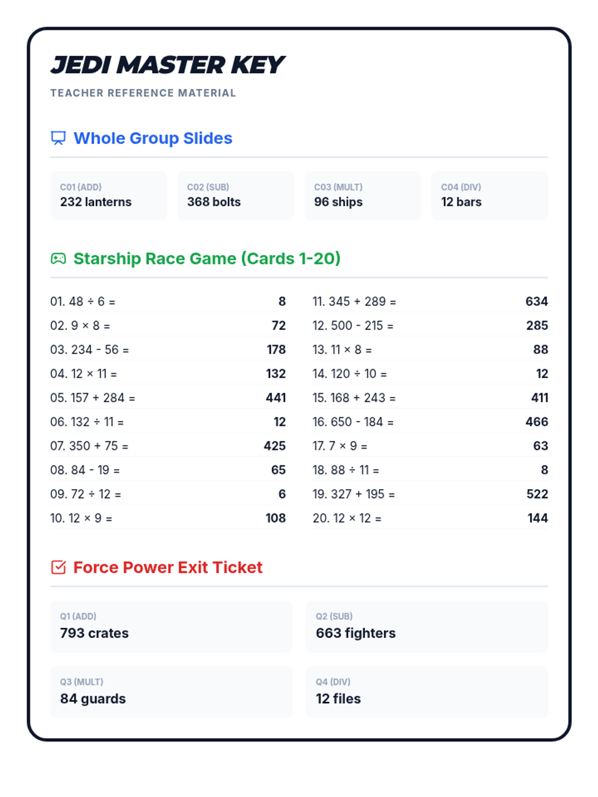 A Star Wars-themed math lesson for 3rd graders focusing on one-step word problems using addition, subtraction, multiplication, and division with facts up to 12. Students engage in a whole-group warm-up, a partner board game, and an individual exit ticket assessment.