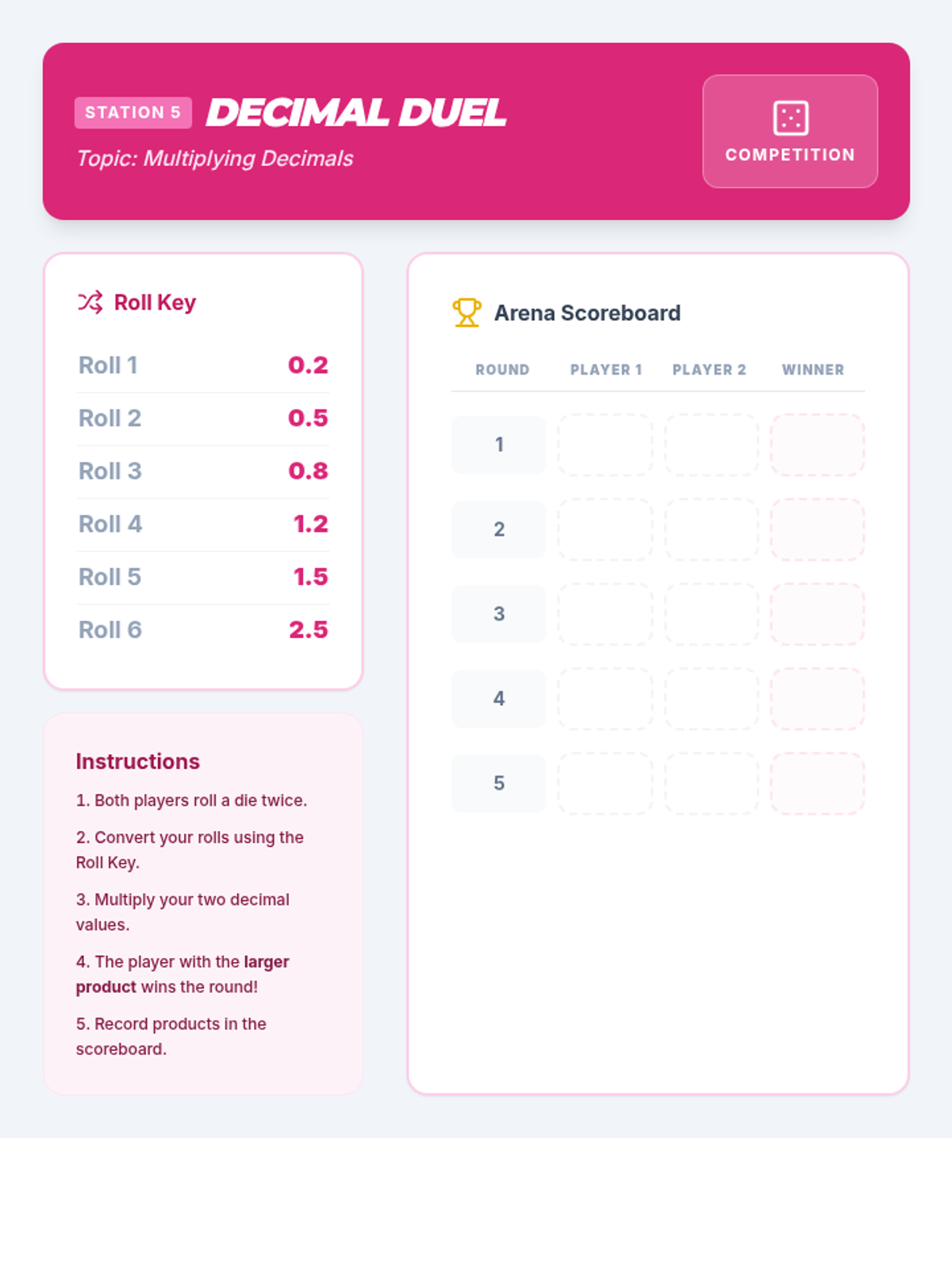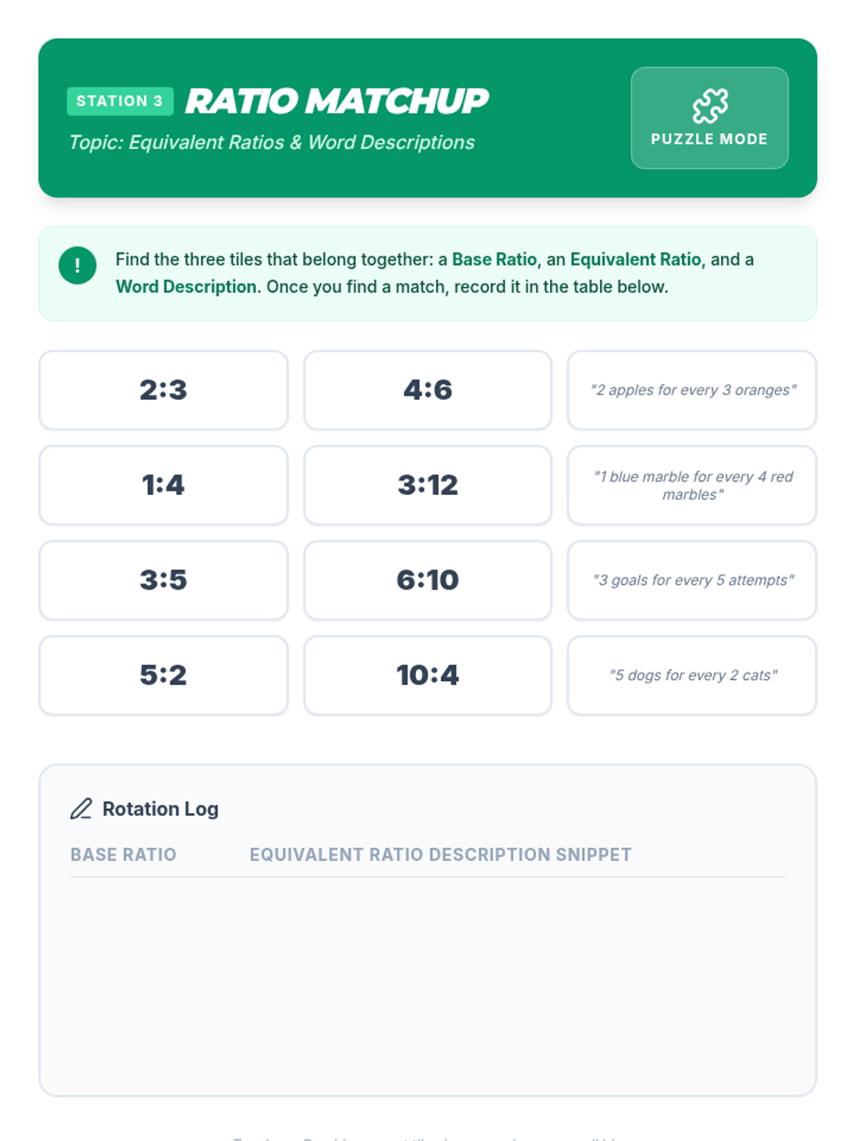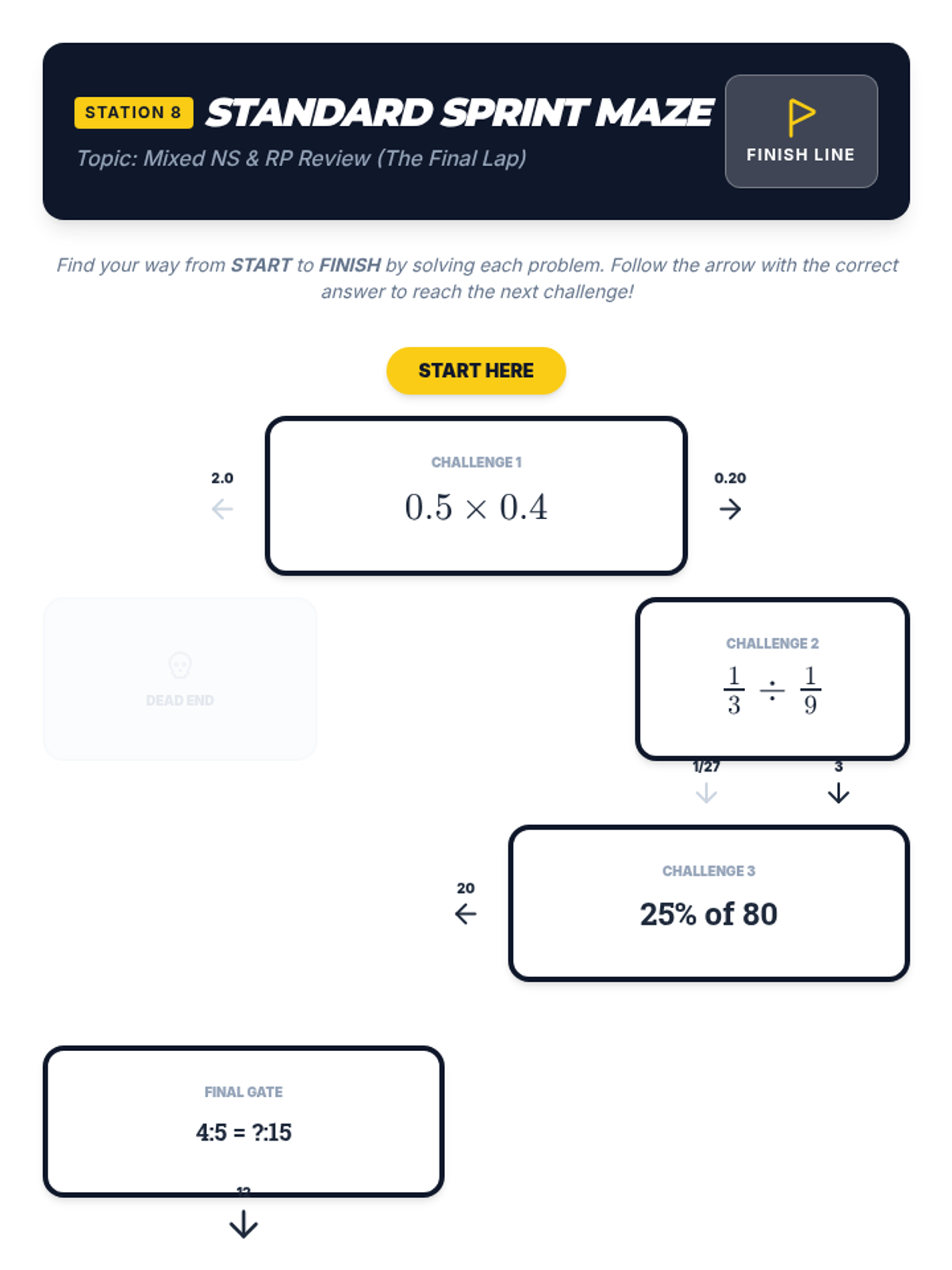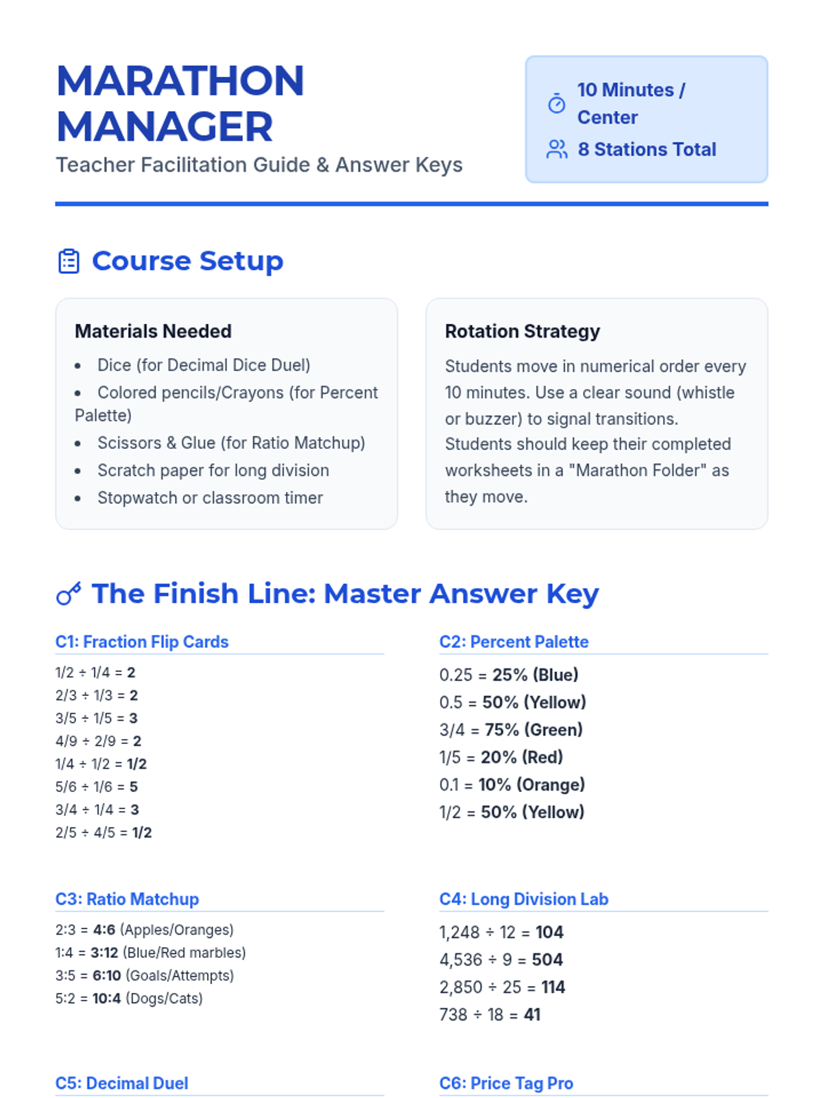 A high-energy series of 8 math centers focused on 6th-grade NS and RP standards, including games, puzzles, and coloring activities designed for 10-minute rotations.