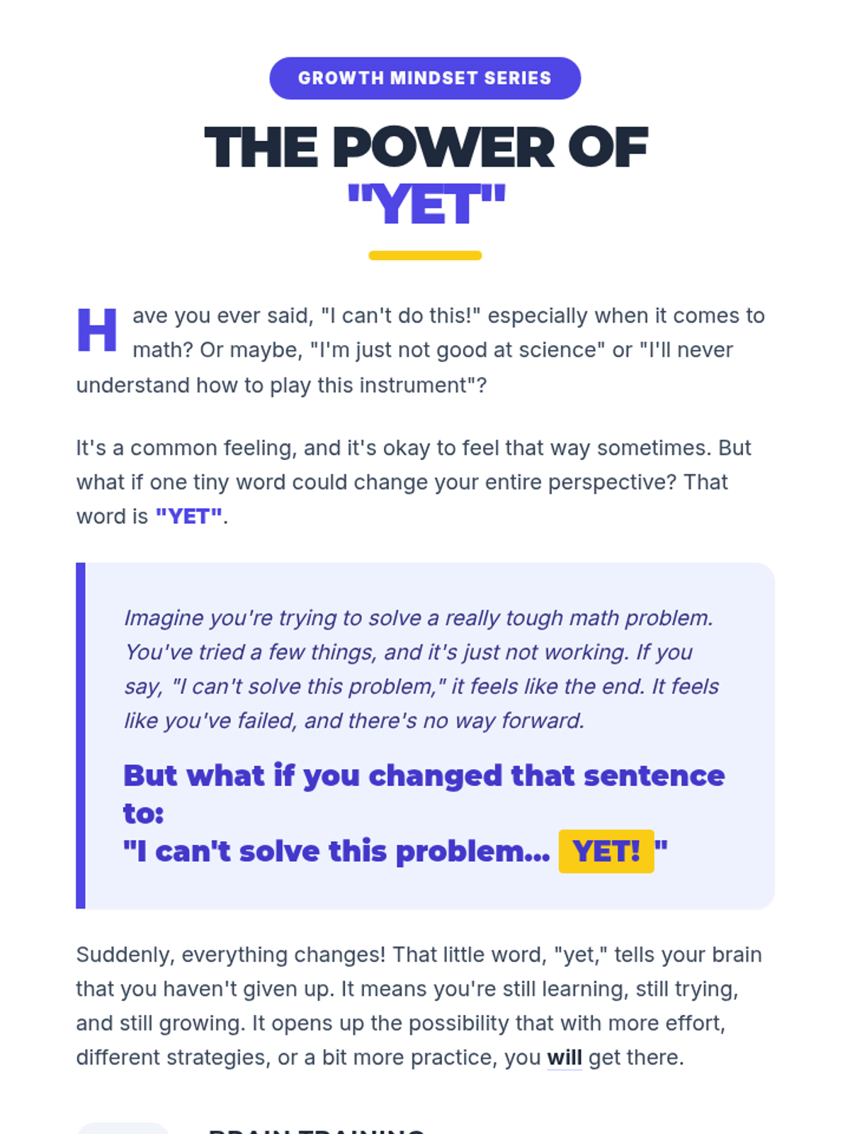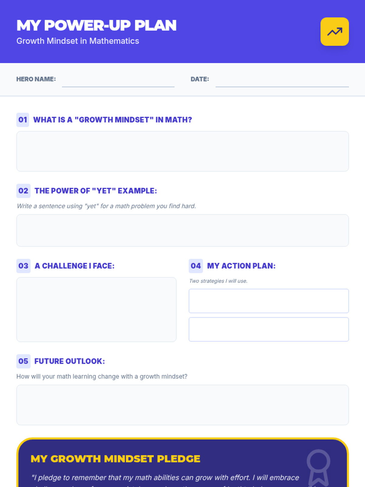 Introduction to the growth mindset. Focus on the 'Power of Yet' and building resilience when facing initial failure.