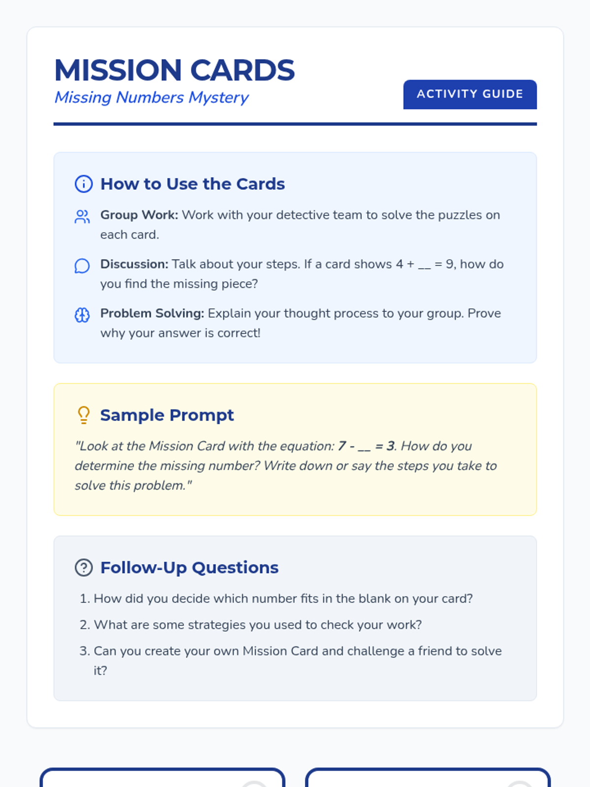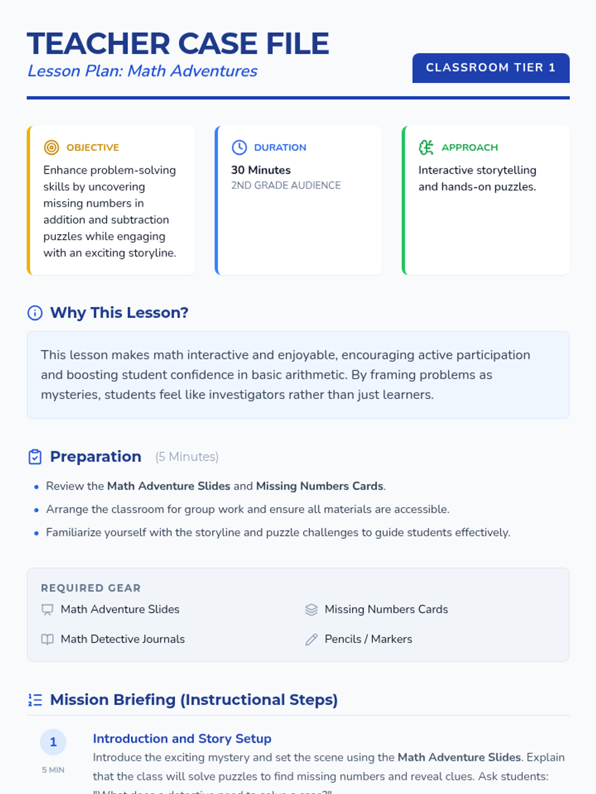 In this engaging 30-minute math lesson for 2nd graders, students embark on a thrilling adventure to solve the mystery of missing numbers in addition and subtraction problems. Students develop algebraic thinking and problem-solving skills through interactive storytelling and collaborative puzzles.