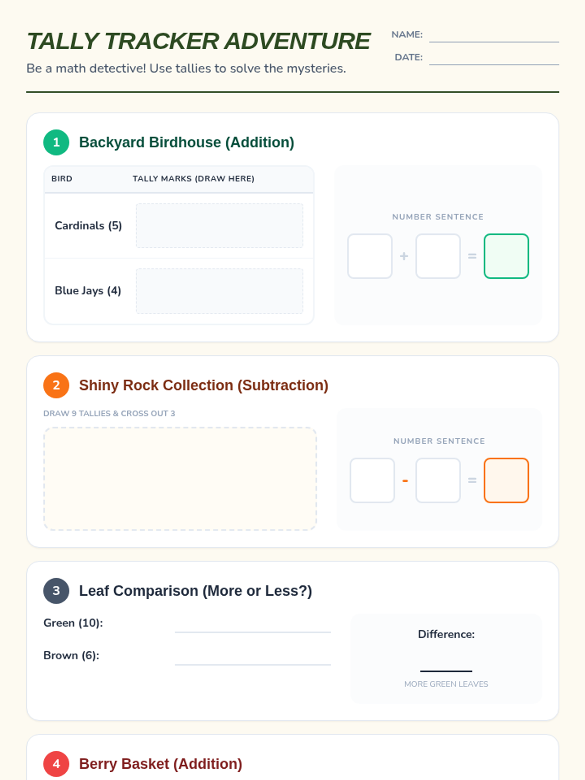 A comprehensive set of practice materials for 1st-grade math skills, focusing on addition and subtraction within 20, three-number addition, and place value. The safari theme engages young learners through visual aids like ten frames, touch-points, and base-ten blocks.