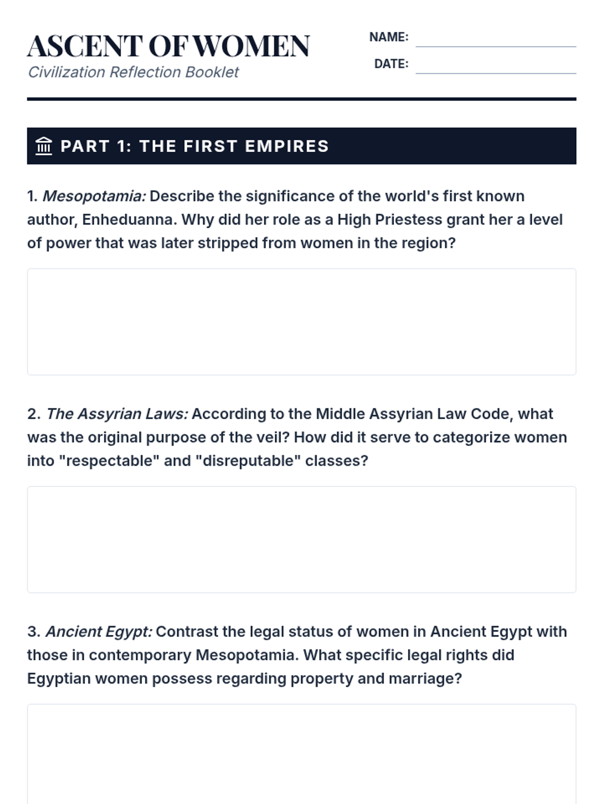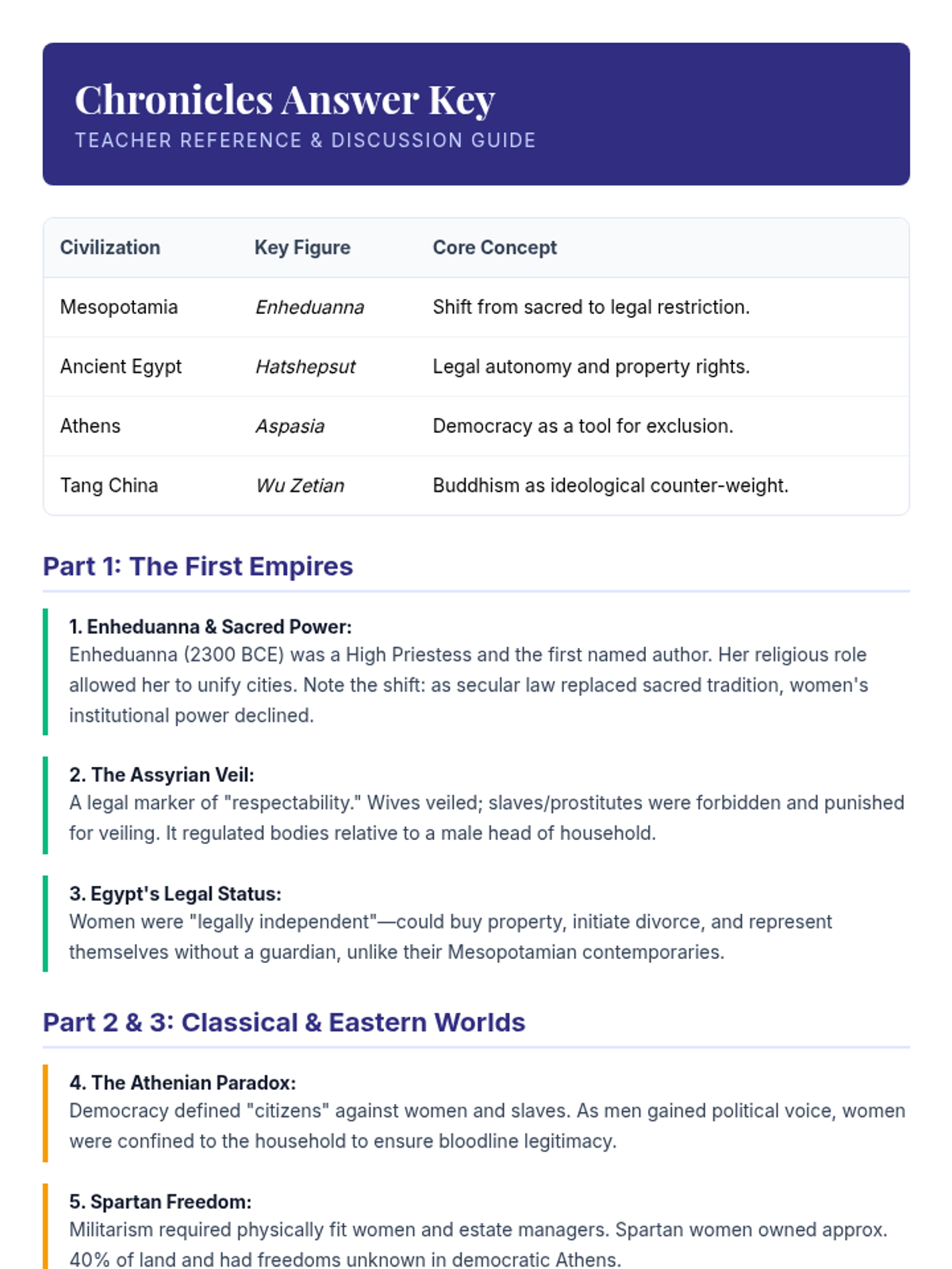 A comprehensive lesson exploring the historical roles and status of women across global civilizations, based on the Ascent of Women documentary series. Includes reflection questions for all major civilizations covered in the episodes.