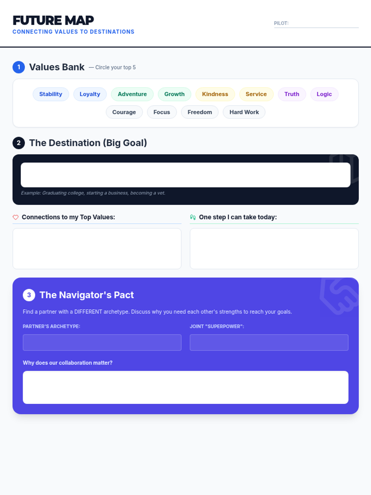 A 45-minute social-emotional learning lesson that guides middle school students through self-exploration, identifying core values, and connecting those values to their future aspirations through a personality-style assessment.