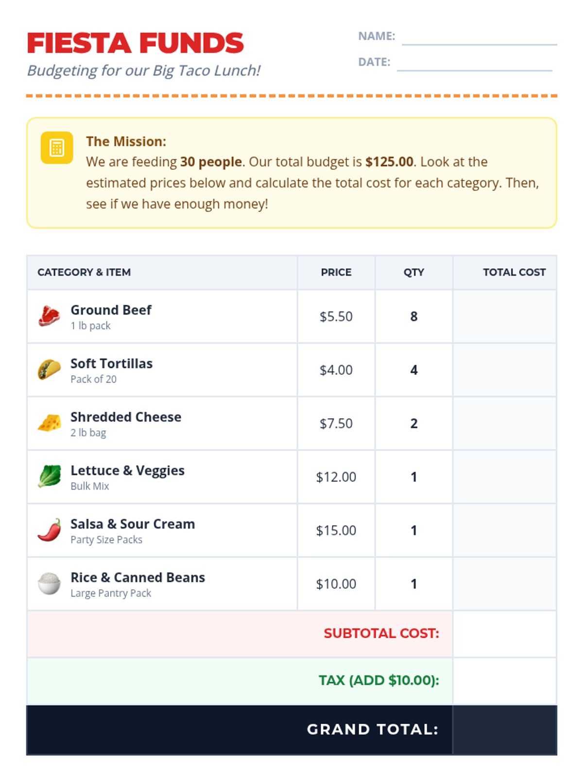 Focuses on food preparation and nutrition. Students follow visual recipes to prepare taco ingredients and identify healthy food groups.