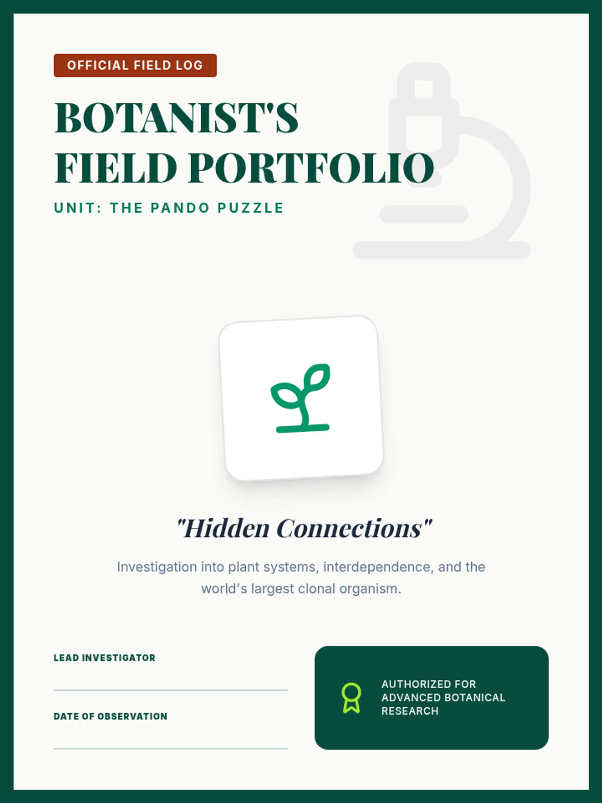 Students explore how roots, stems, leaves, and reproductive systems work together, using Pando as a case study for survival and adaptation.