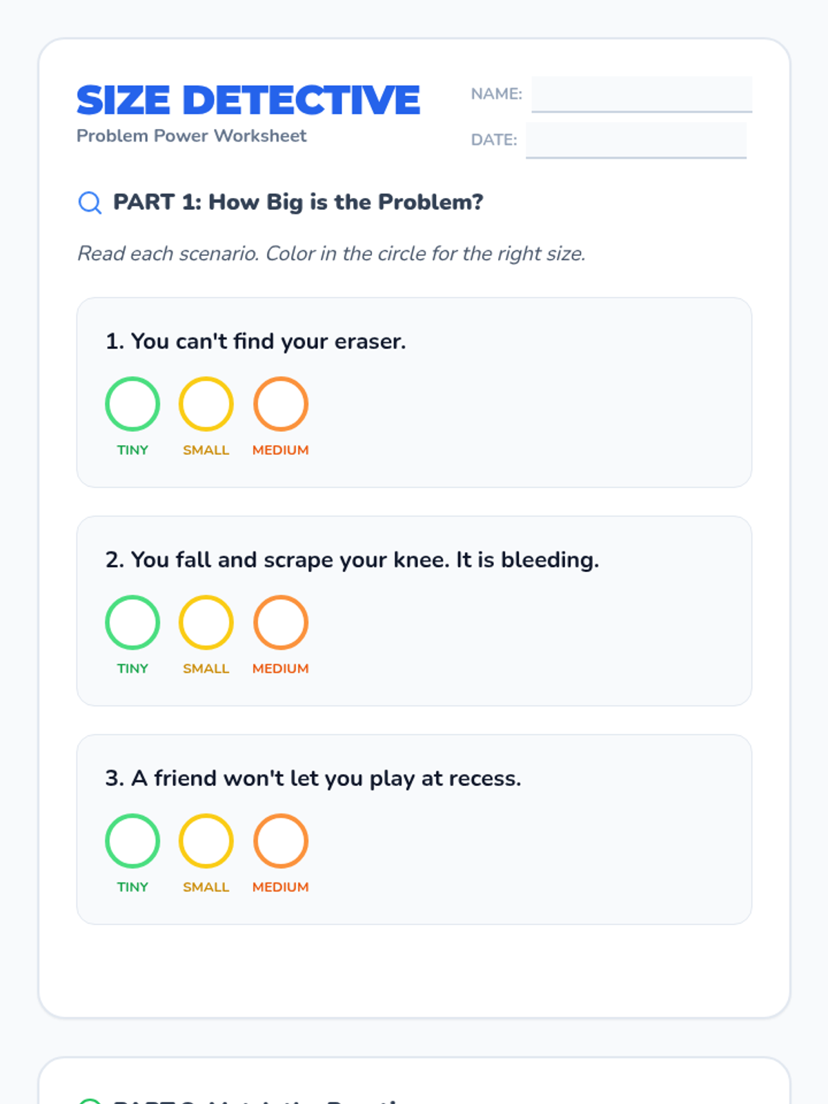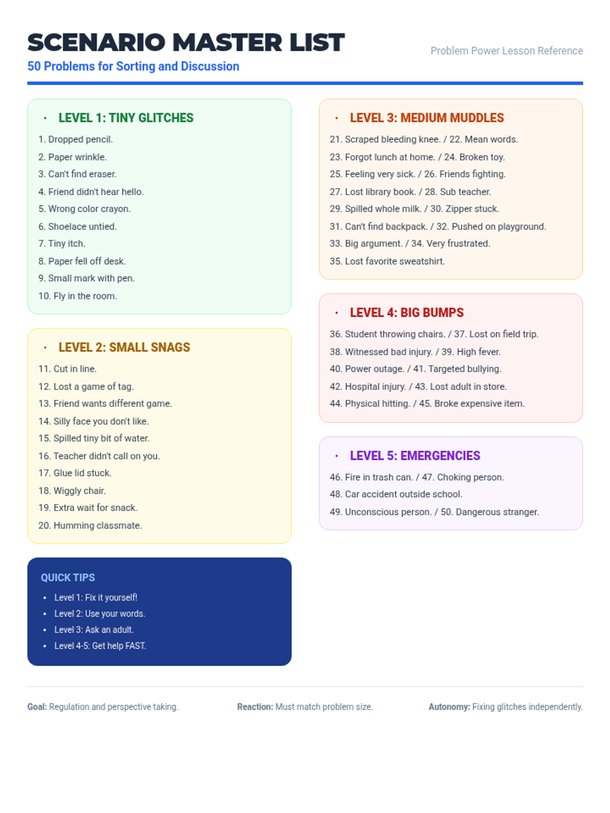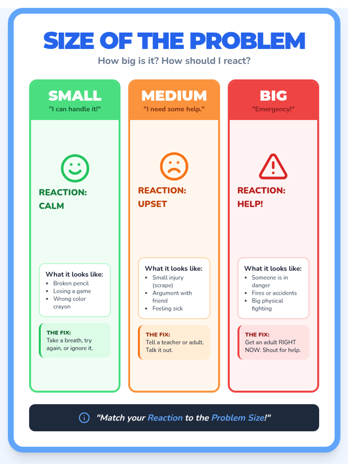 A comprehensive lesson introducing 1st graders to the 'Size of the Problem' concept, focusing on emotional regulation and matching reaction sizes to problem levels.