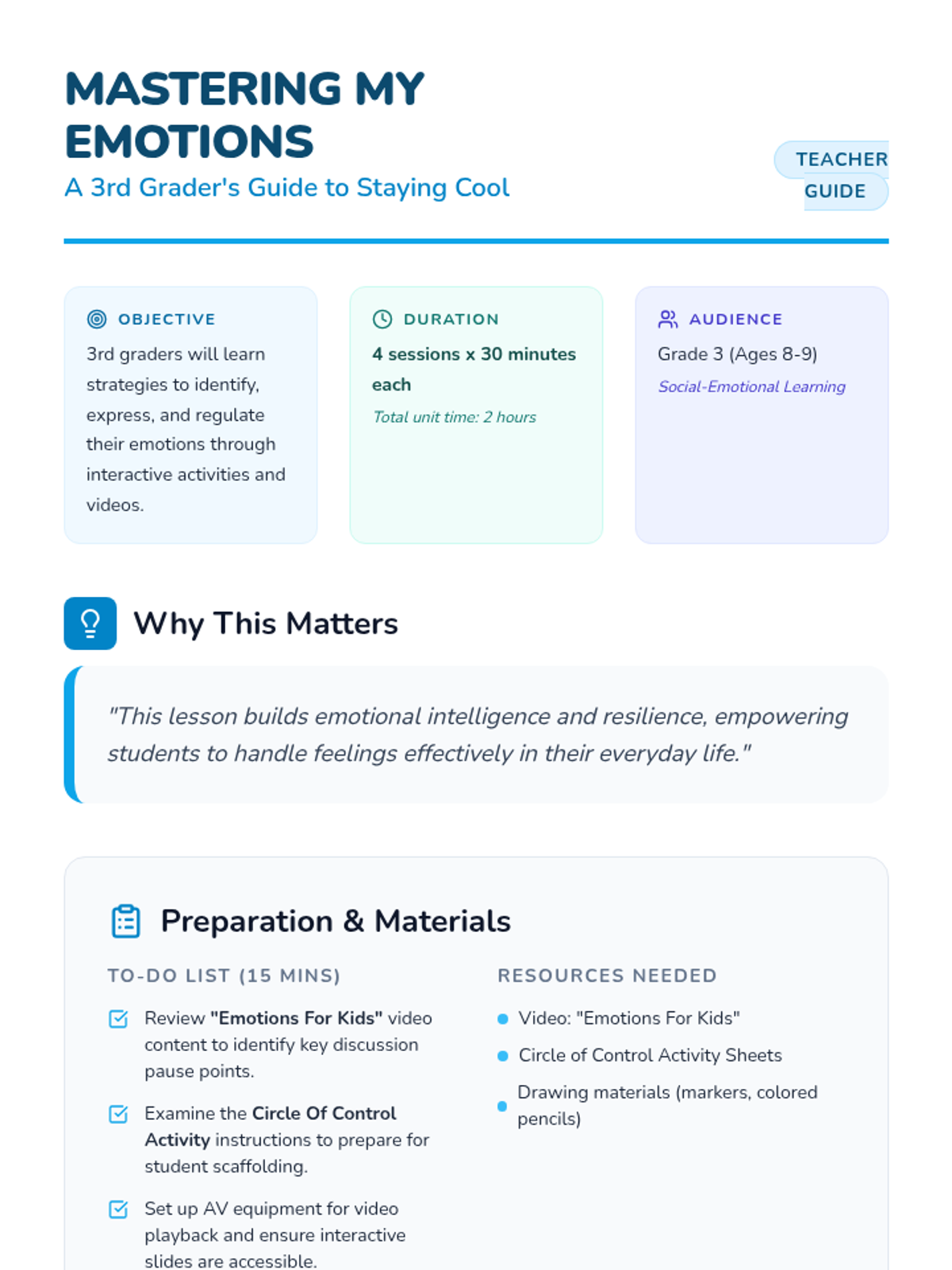 Students define emotions and identify them through facial expressions and body language using interactive games.
