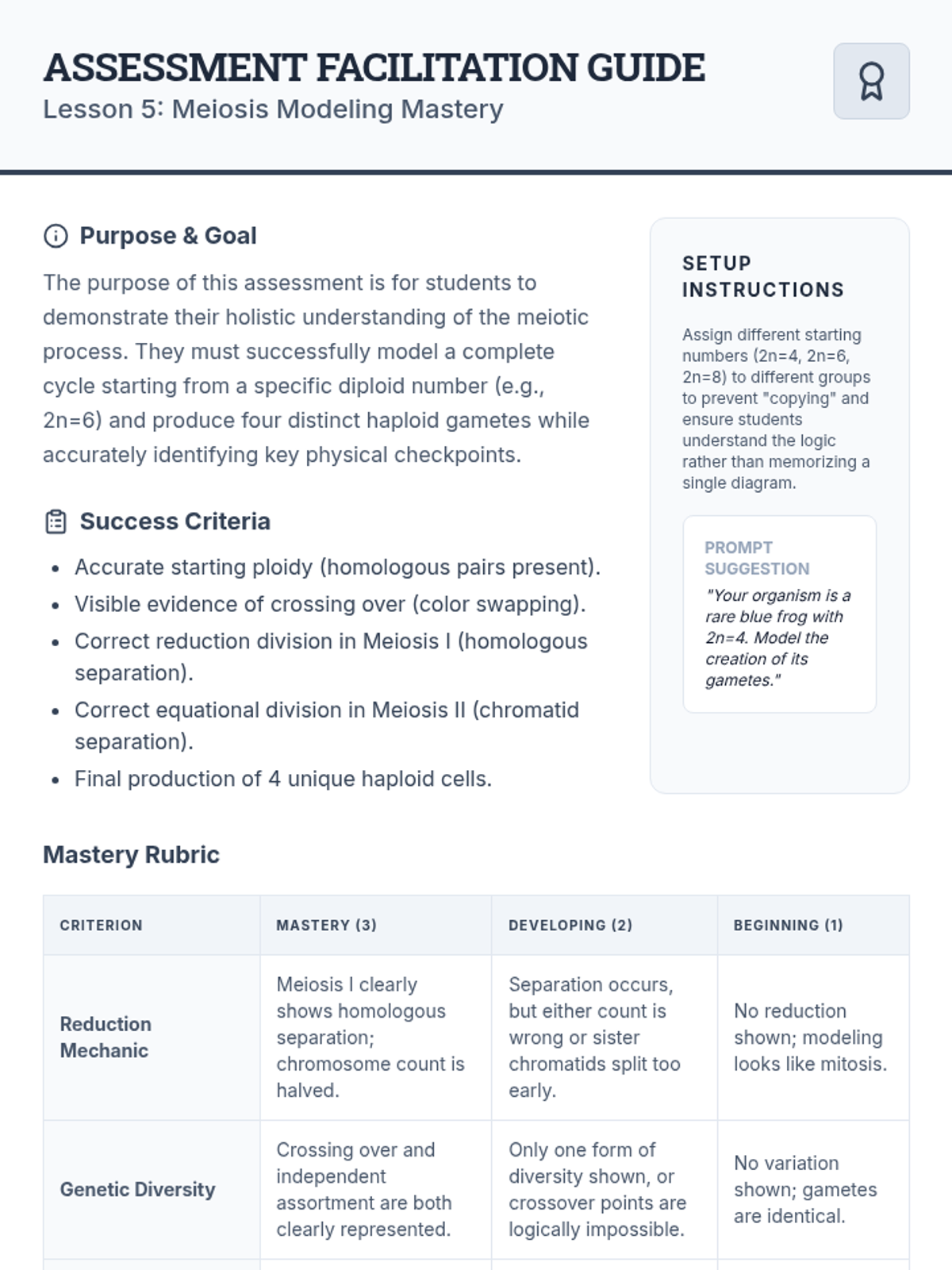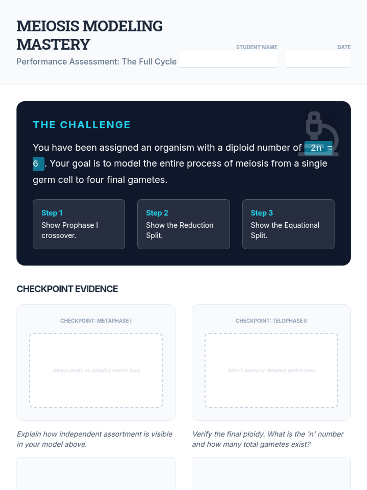 In this culminating workshop, students are given a starting cell with a specific chromosome count and must document every stage of meiosis using stop-motion animation or detailed diagramming. This validates their understanding of the reduction sequence.