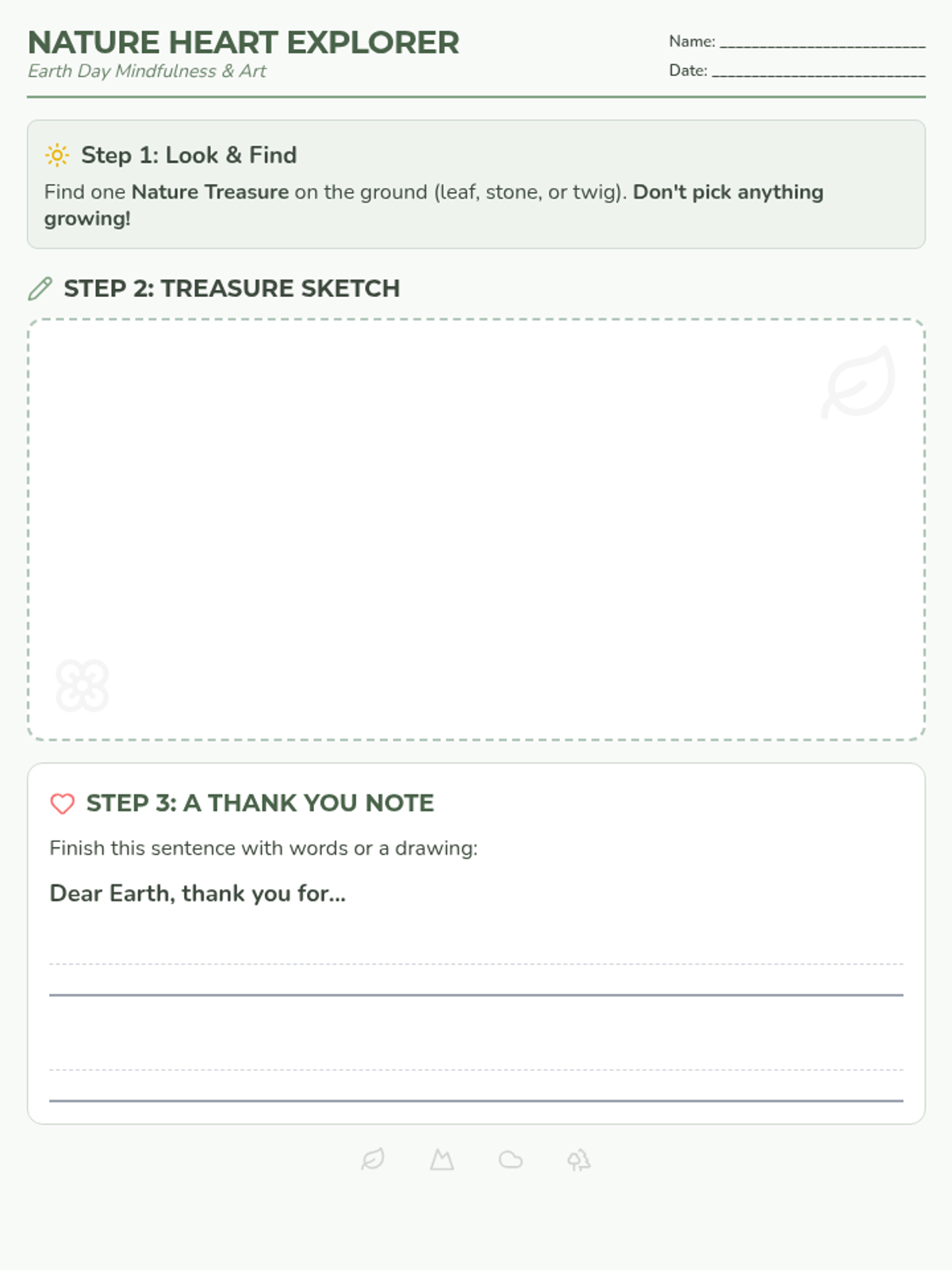 A 20-minute SEL and art lesson for K-1 students that uses mindfulness and sketching to foster gratitude and respect for the environment during Earth Day.