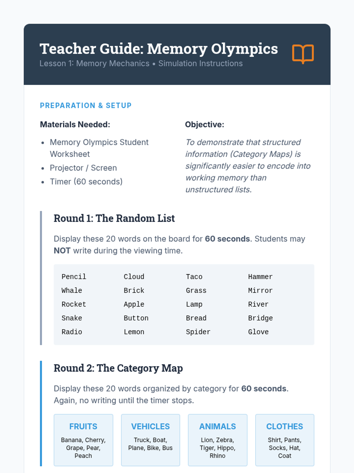 Students explore cognitive load theory through a memory simulation, discovering how visual grouping reduces mental strain compared to linear lists. This lesson frames graphic organizers as essential 'external hard drives' for their brains.