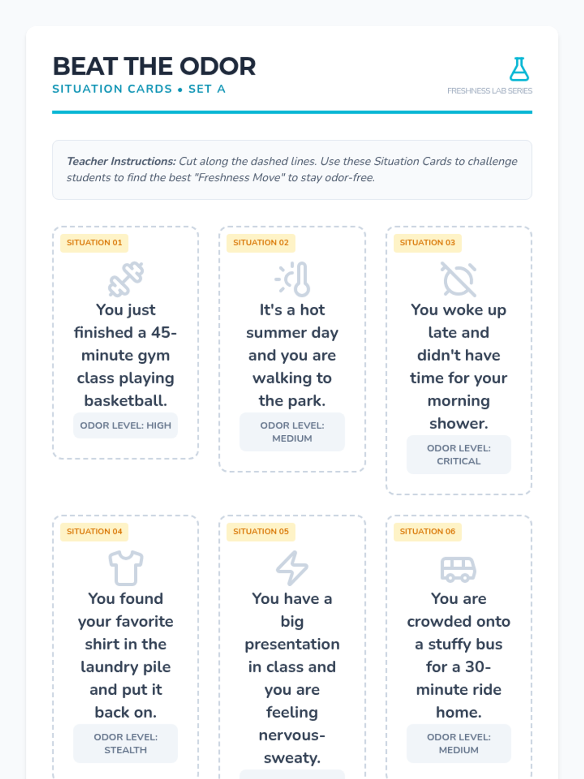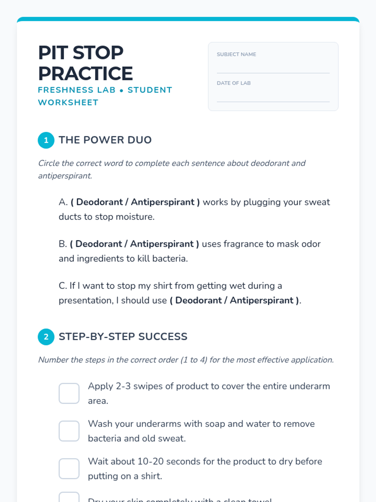 A fun and engaging lesson on personal hygiene, focusing specifically on understanding and correctly using deodorant and antiperspirant to manage body odor.