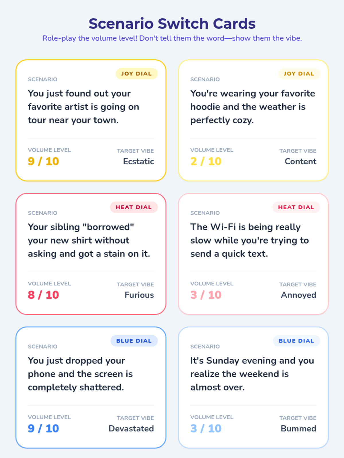 A Tier 2 social-emotional learning lesson for 6th-grade girls focused on identifying and expressing the varying intensities of core emotions through visual scales and role-playing practice.