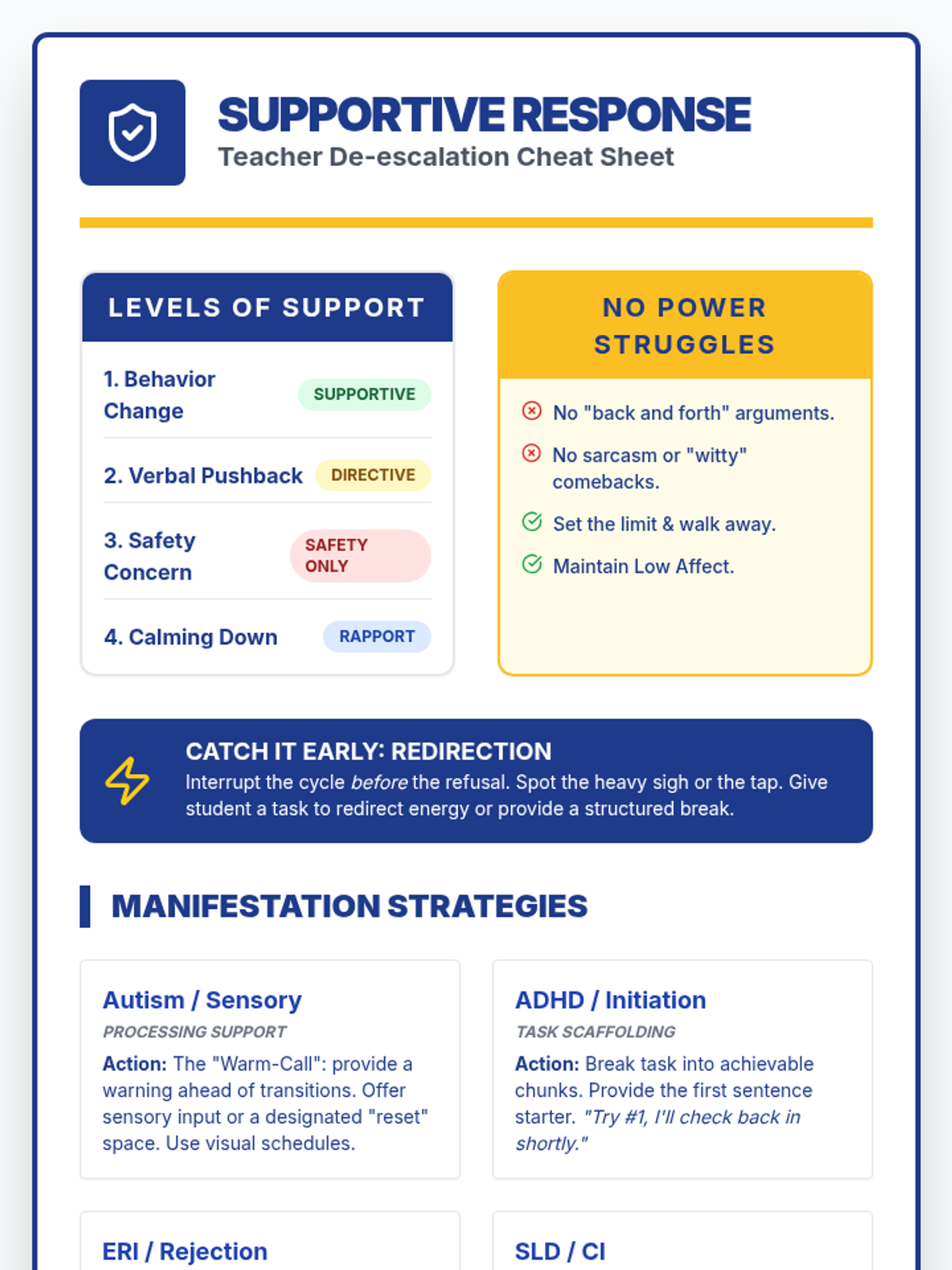 A professional development session for teachers focused on de-escalation strategies and understanding behavioral manifestations of various disability classifications. This lesson aims to shift teacher response from reactive referrals to proactive support using the CPI model and emotional constancy.