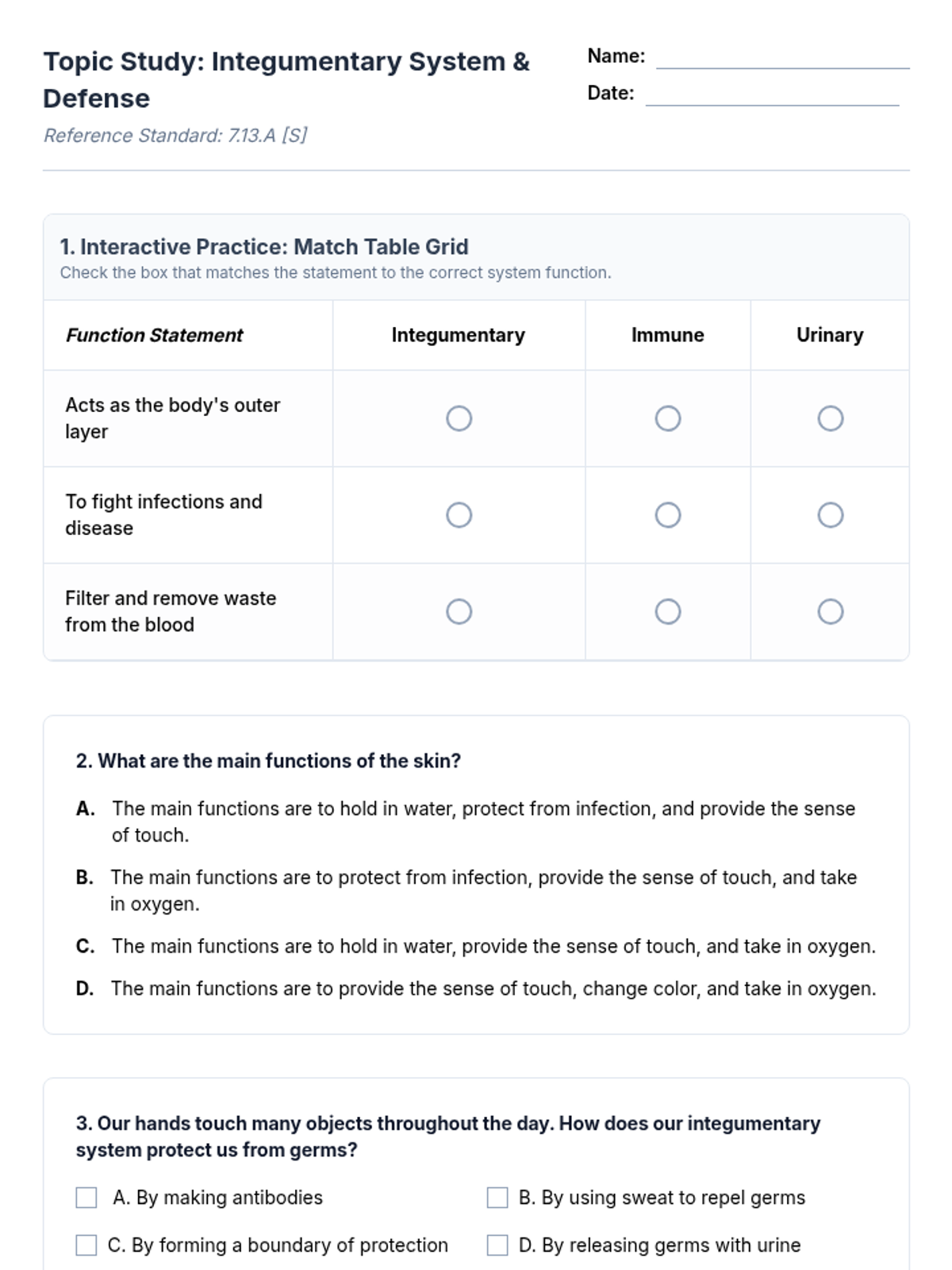 A comprehensive introduction to microbiology focusing on germs, bacteria, and viruses. Students will explore how these microorganisms affect the human body and learn to distinguish between different types of pathogens through interactive slides and hands-on organizers.