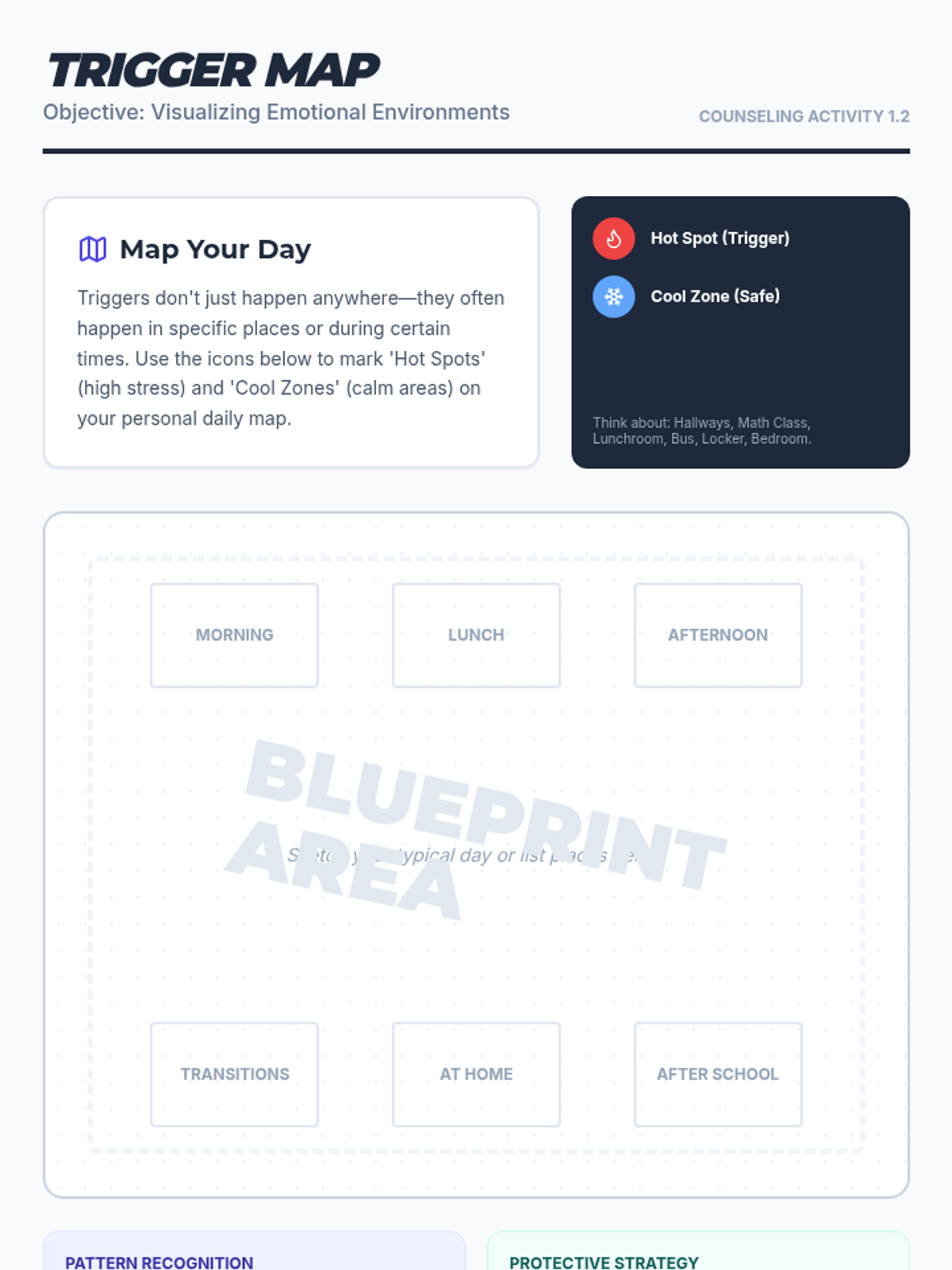 Helps the student identify physical and emotional 'warning lights' that indicate vulnerability or being overwhelmed.
