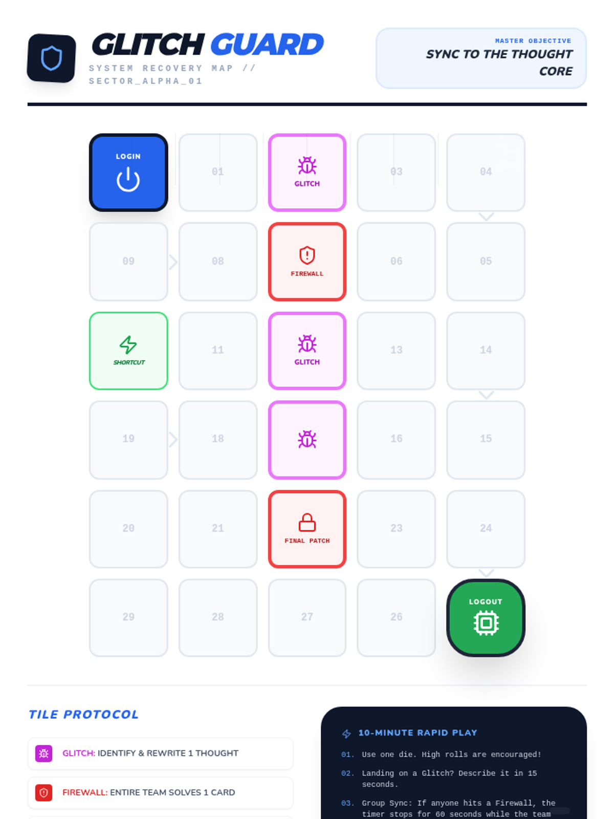 The core lesson of the Brain Glitch series, introducing cognitive distortions as 'system glitches' and using a cooperative board game to teach students how to identify and debug them.