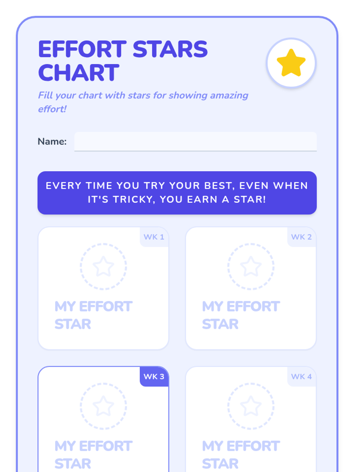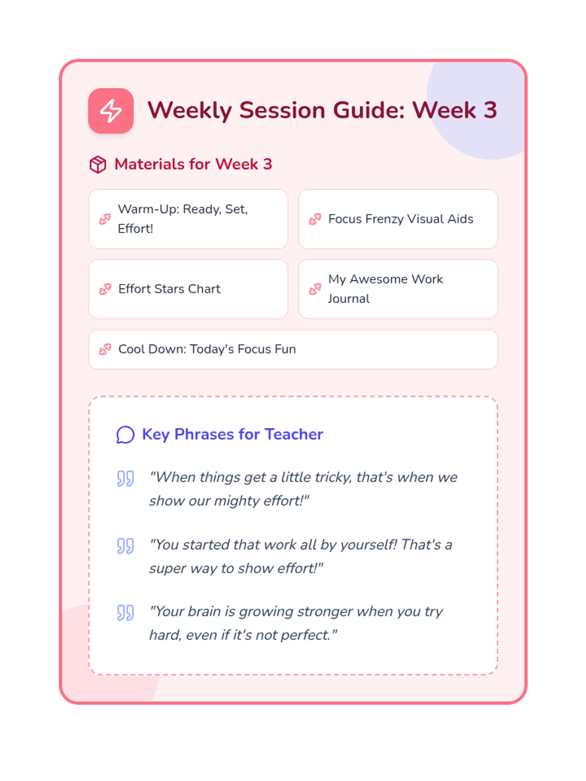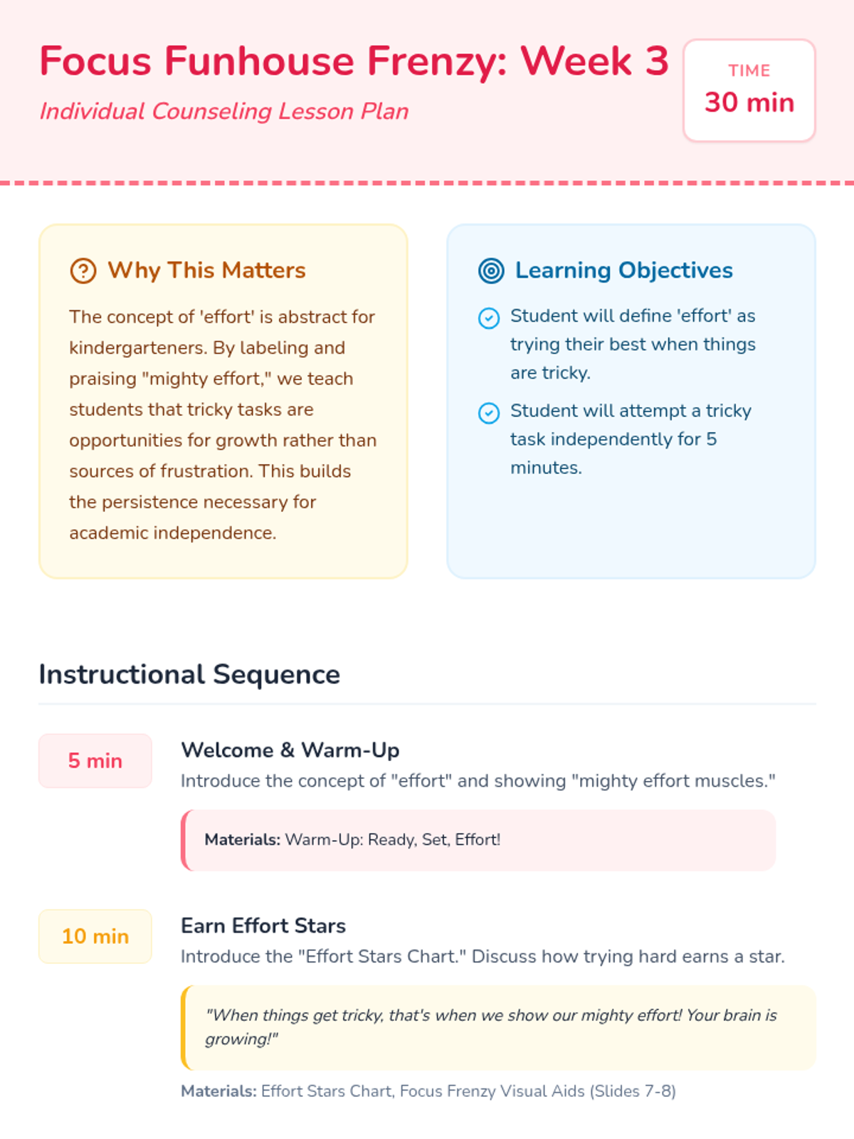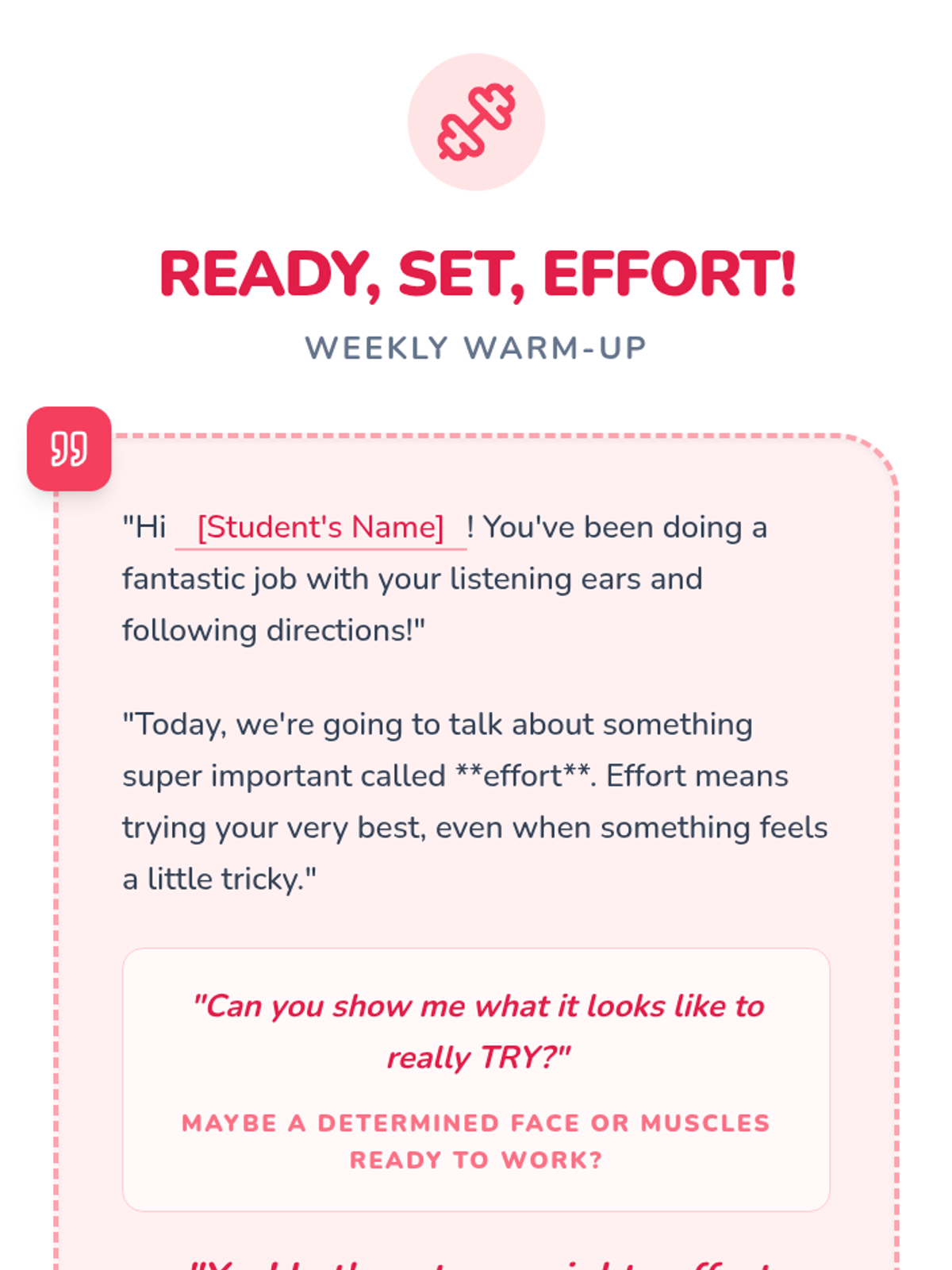 Teaches students the concept of effort and persistence, encouraging them to try their best even when tasks feel tricky.