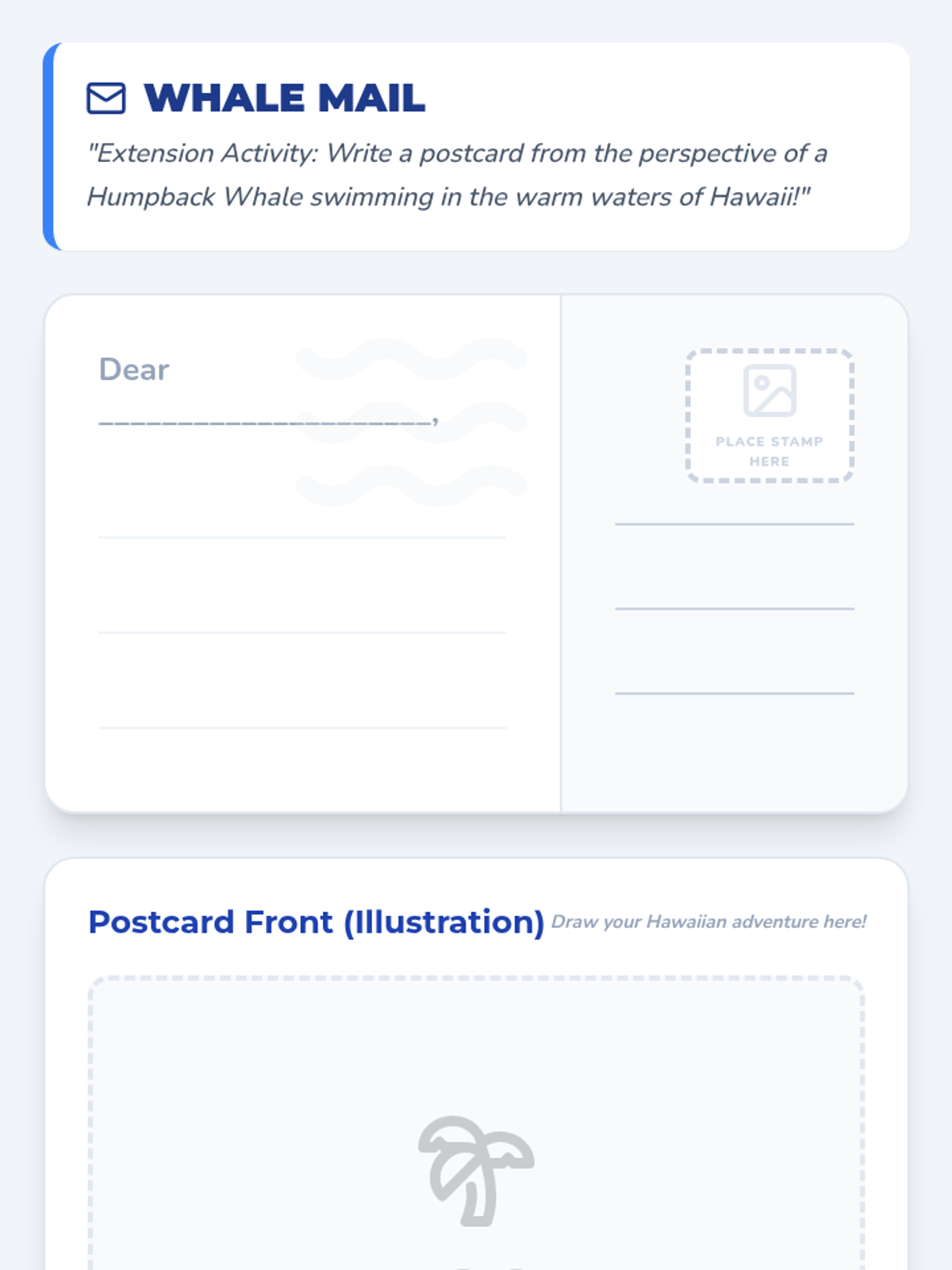 An immersive literacy and science lesson for 1st-2nd graders exploring the wonders of the ocean through handwriting practice and marine life exploration.