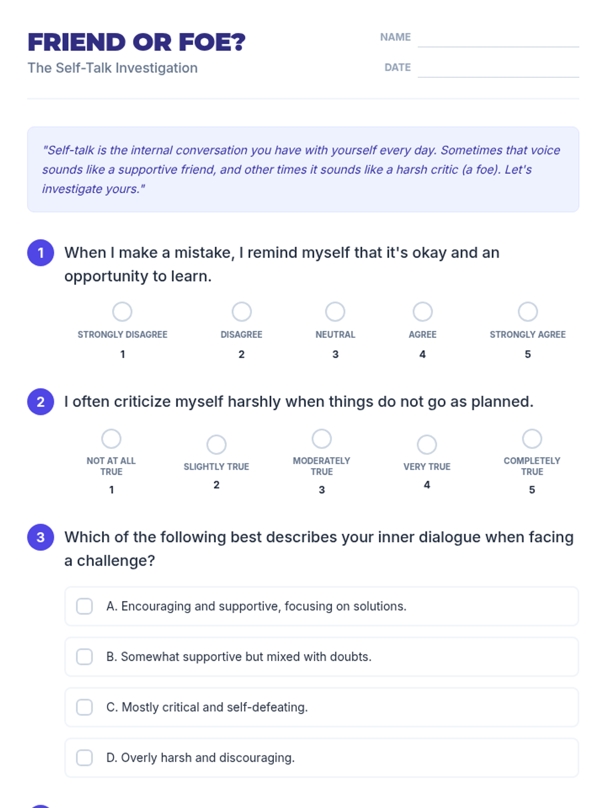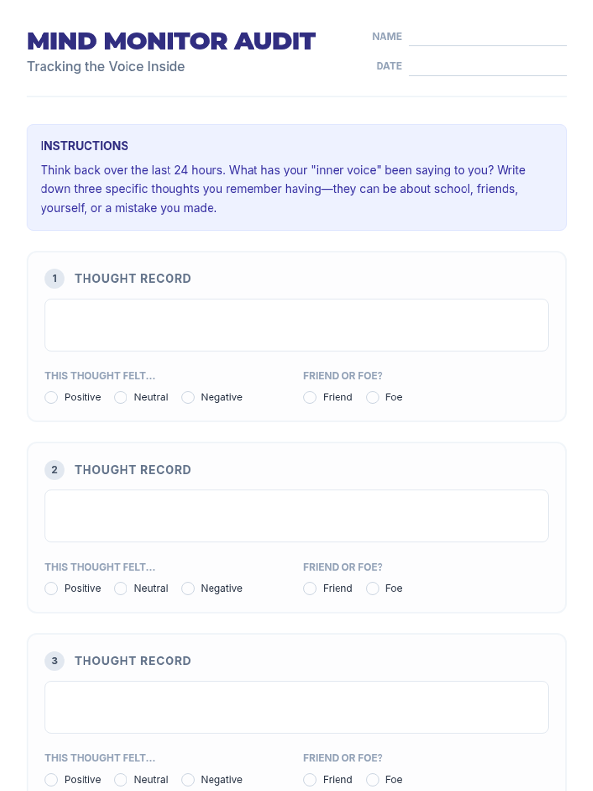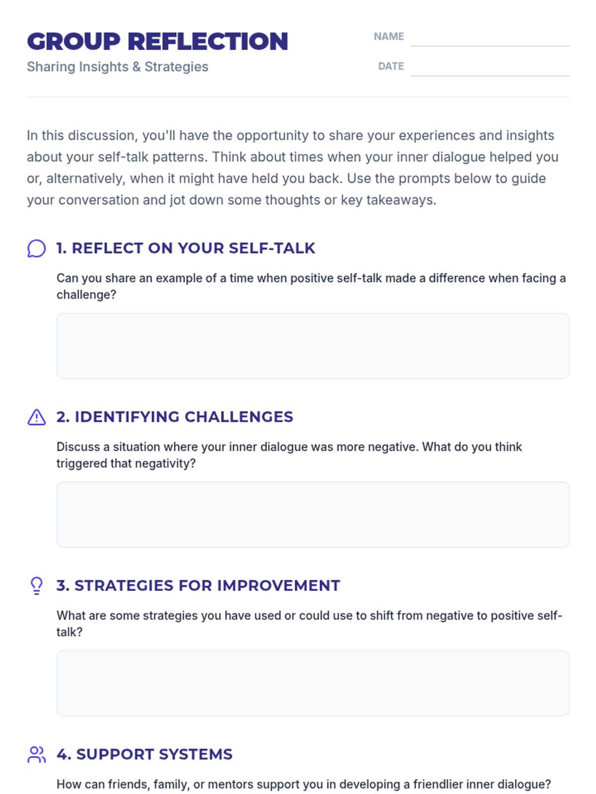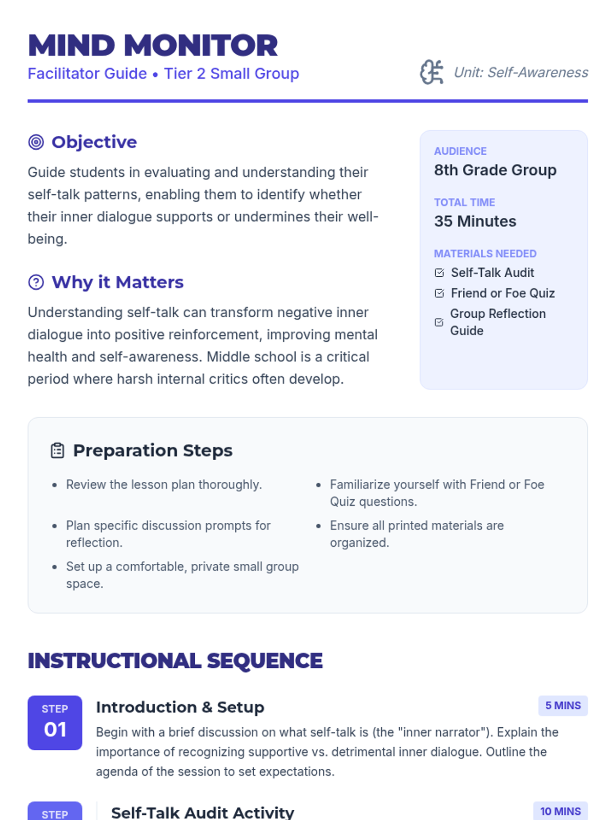 A Tier 2 small group lesson designed for 8th graders to analyze their internal dialogue and develop strategies for positive self-talk.