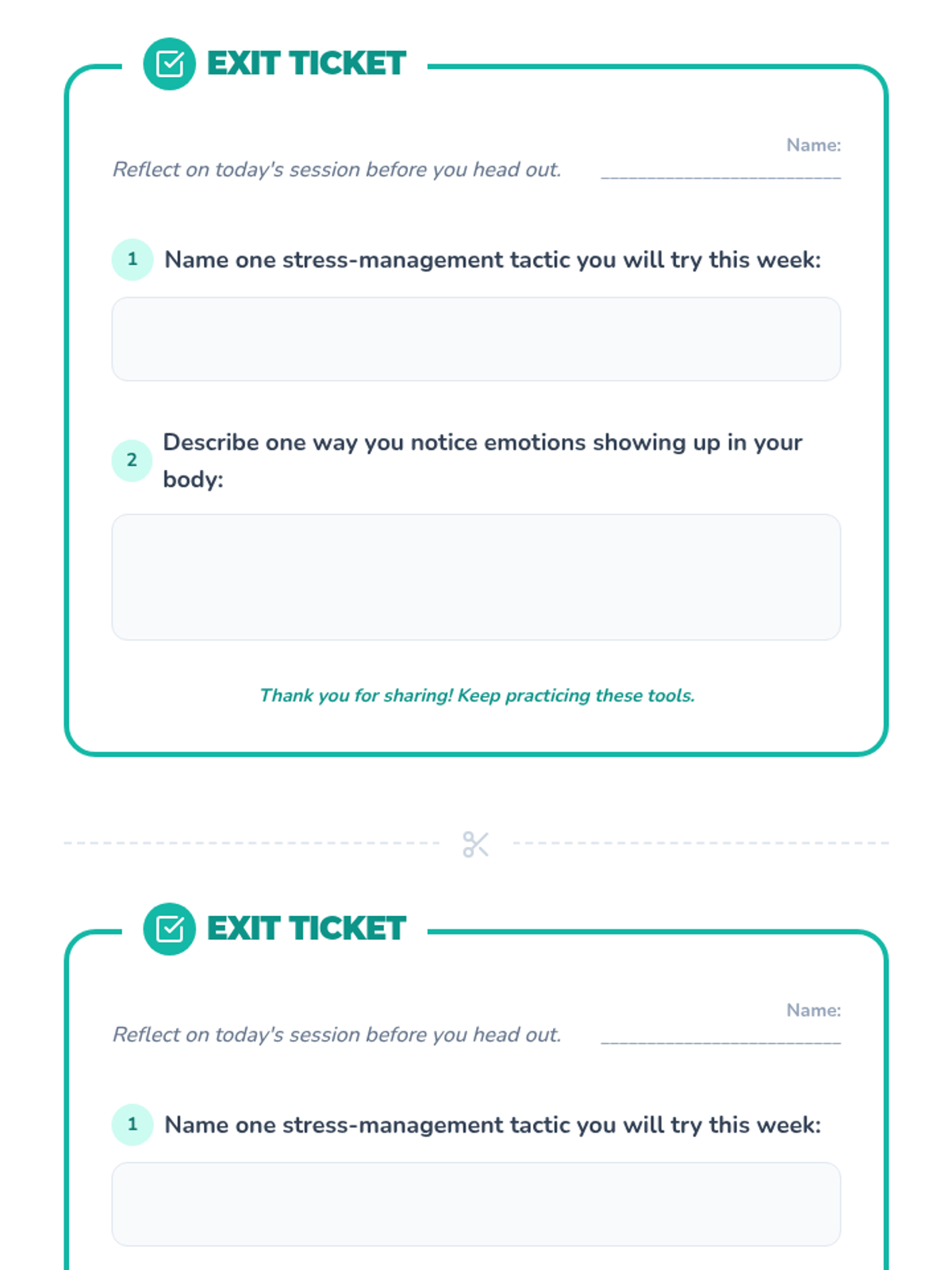 Reviewing various coping skills and creating a personalized 'Survival Kit' for future use.