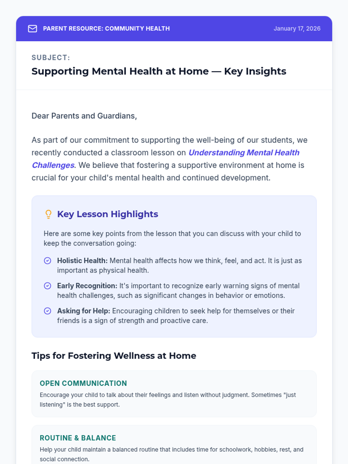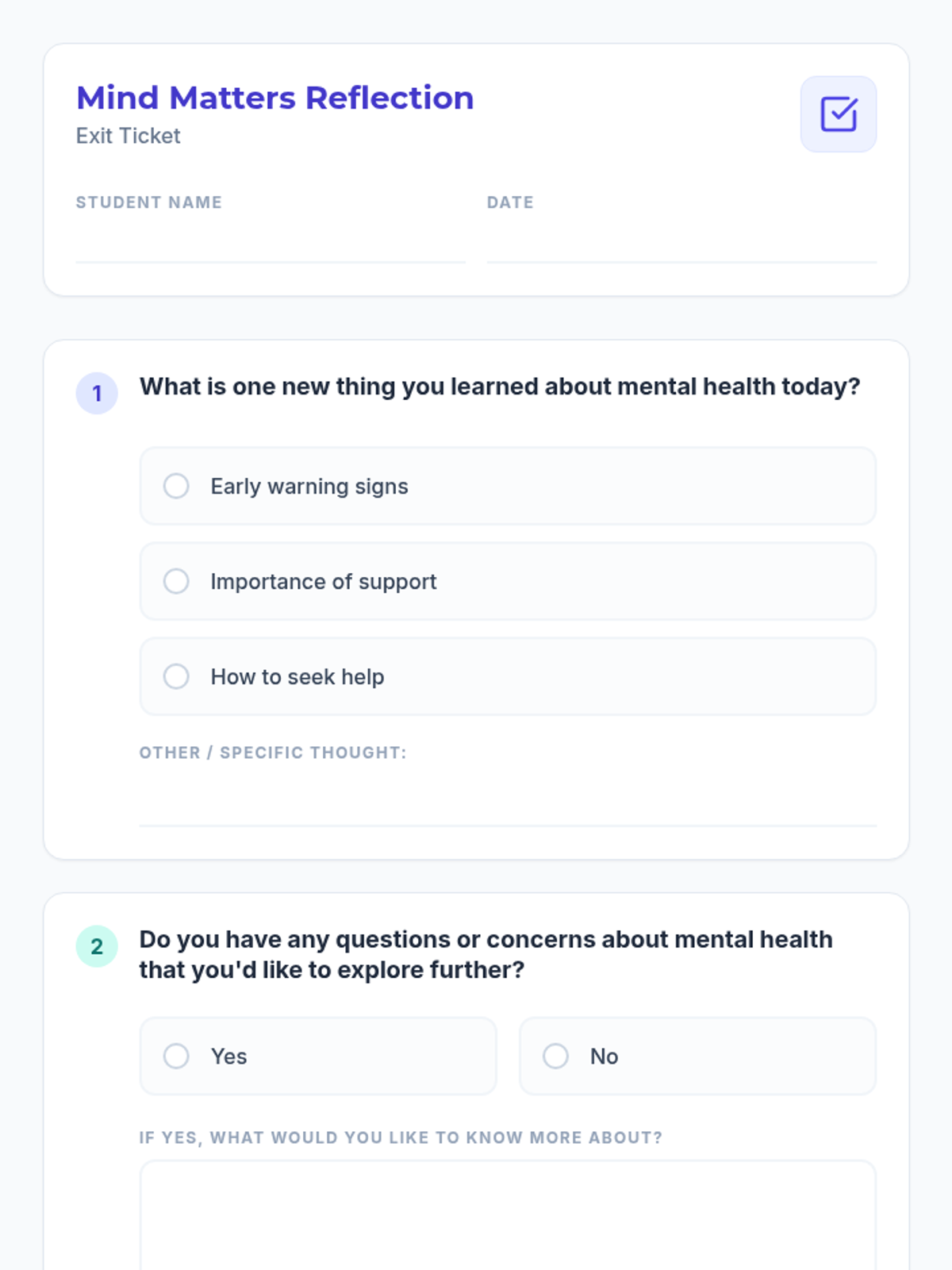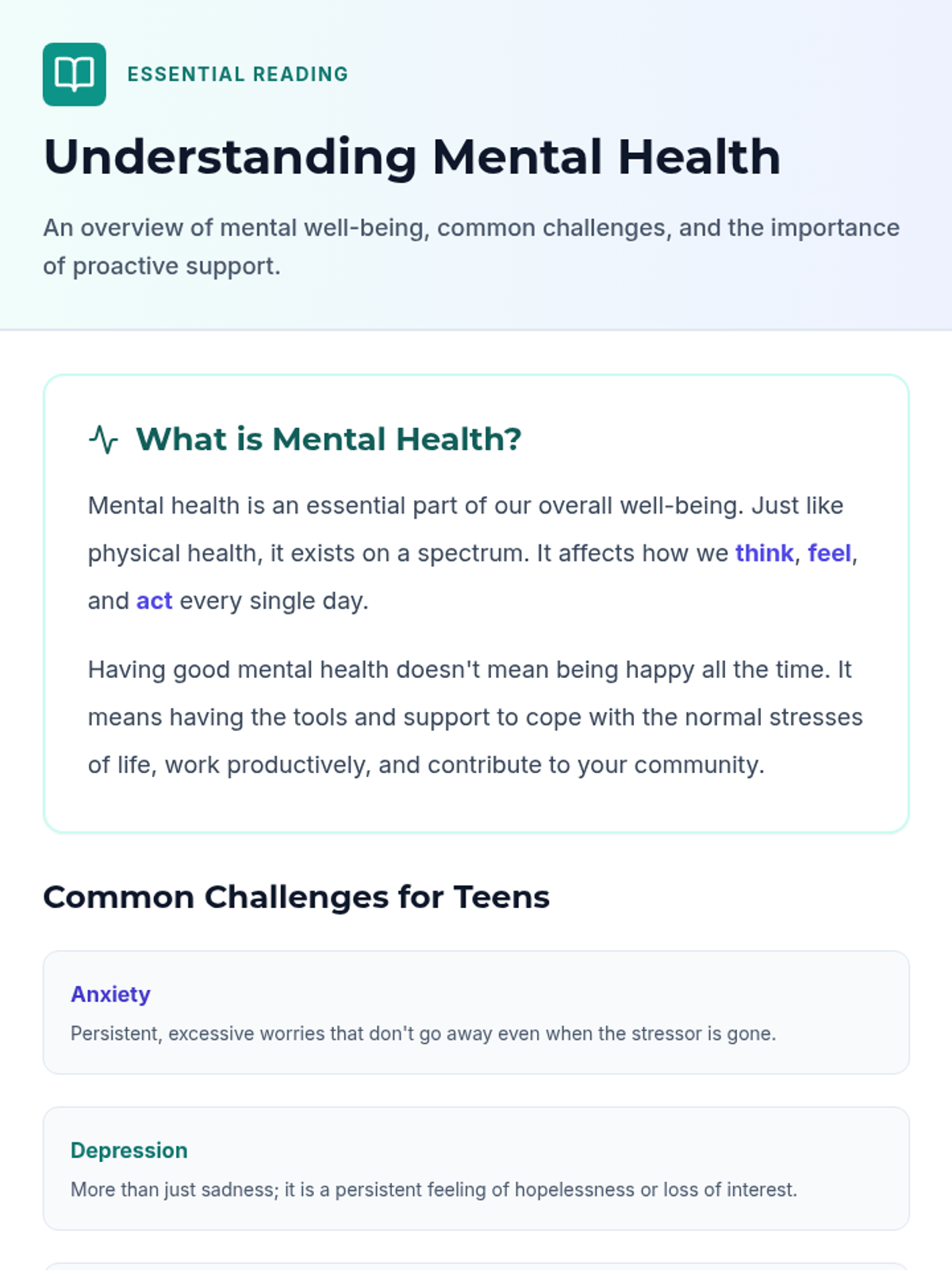 This lesson introduces 9th-grade students to mental health challenges, focusing on recognizing early warning signs and understanding the importance of seeking help through collaborative and active learning.