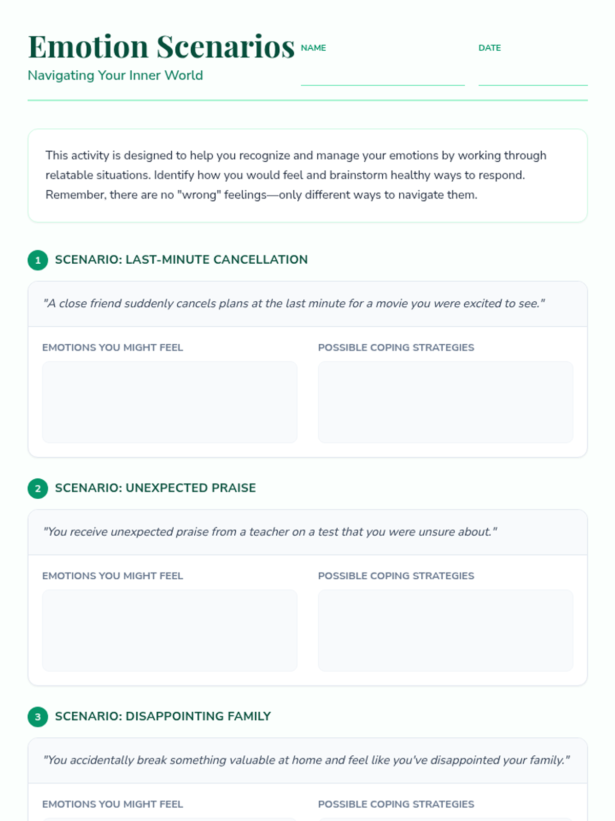 Students will explore a variety of sensory and cognitive coping strategies. They will evaluate which techniques work best for them and begin building their personal 'Coping Menu'.