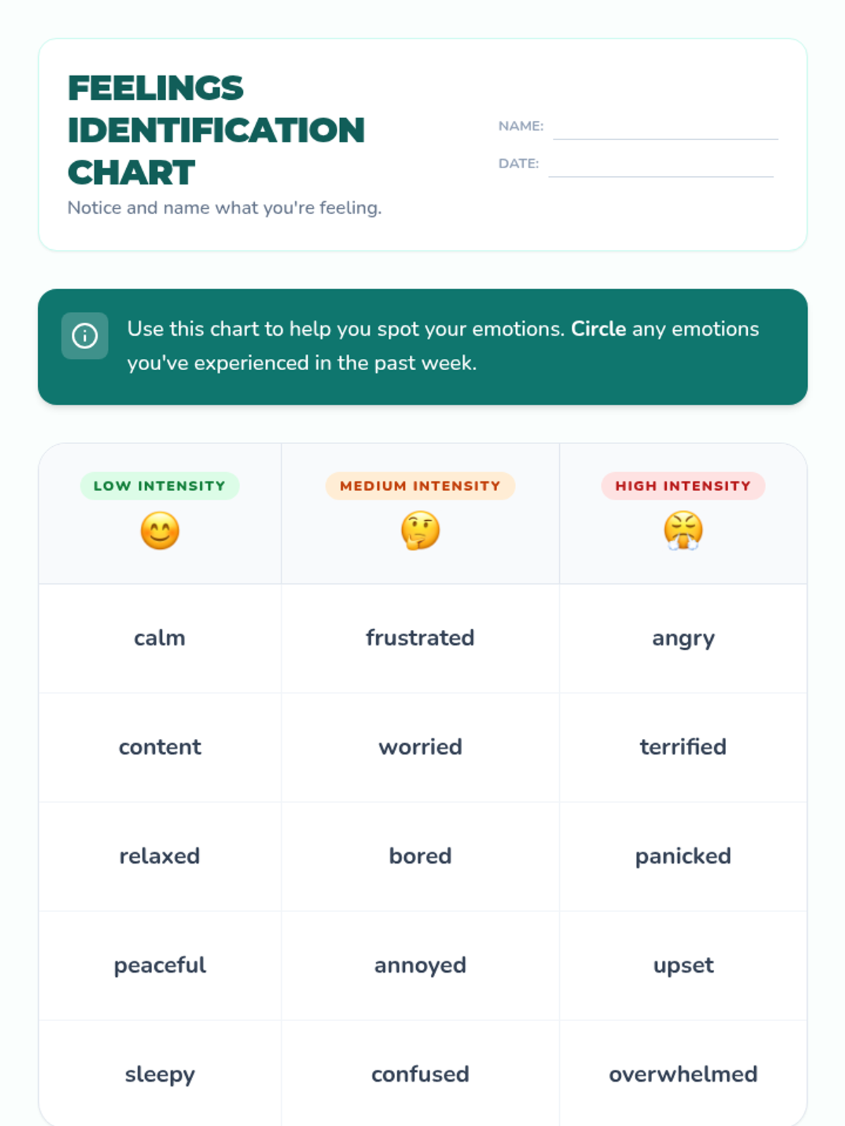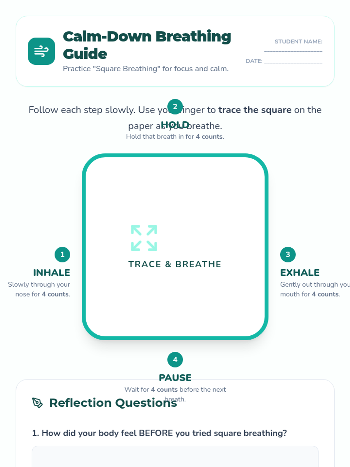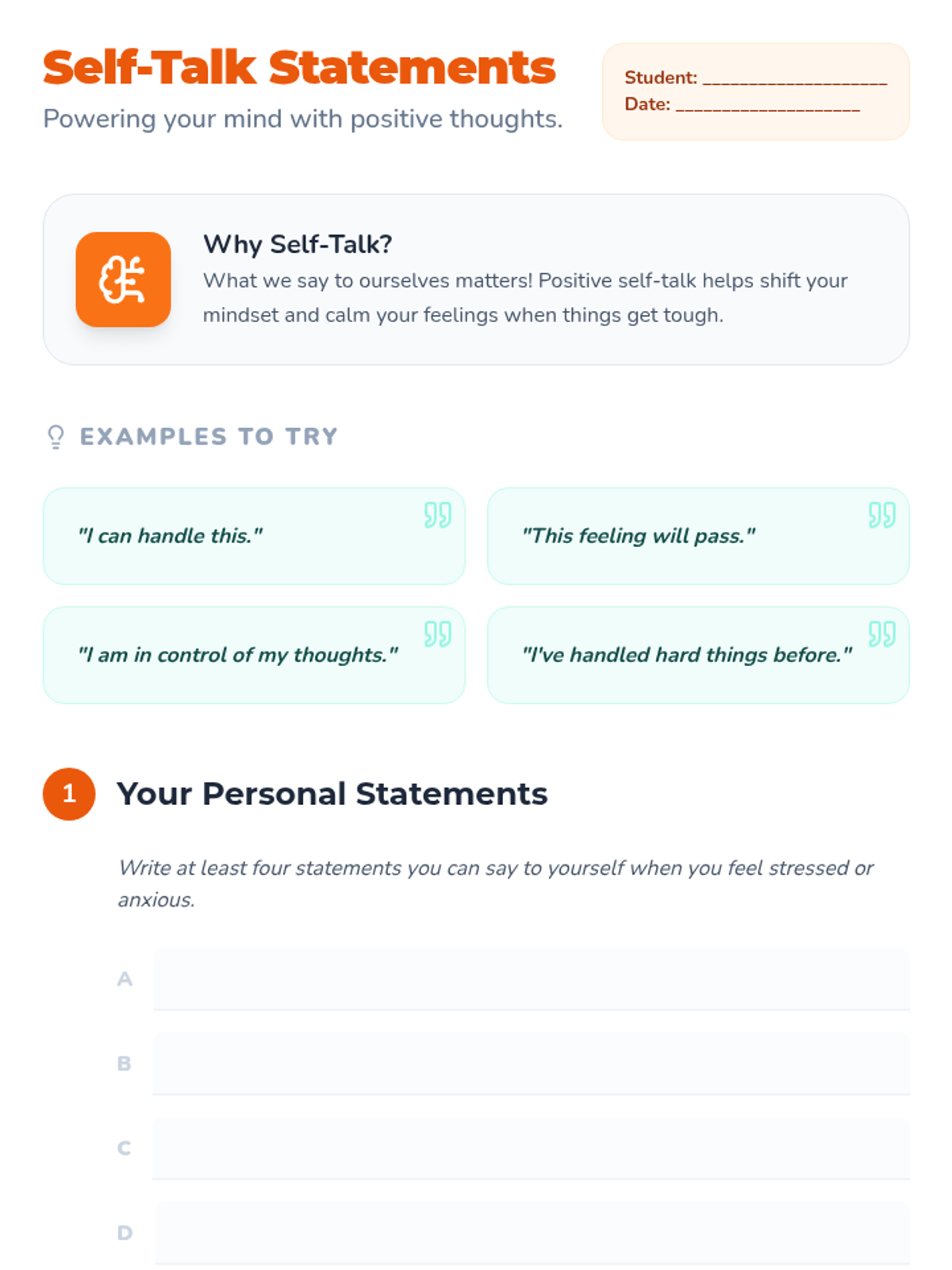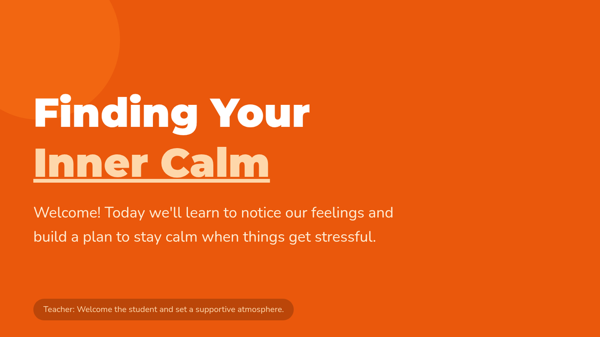 A focused 30-minute individual counseling session for 6th graders to develop emotional awareness and personal coping strategies through breathing techniques, self-talk, and a personalized plan.