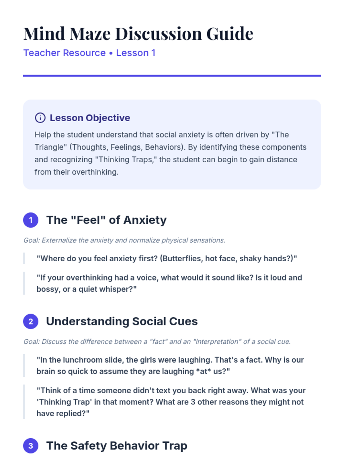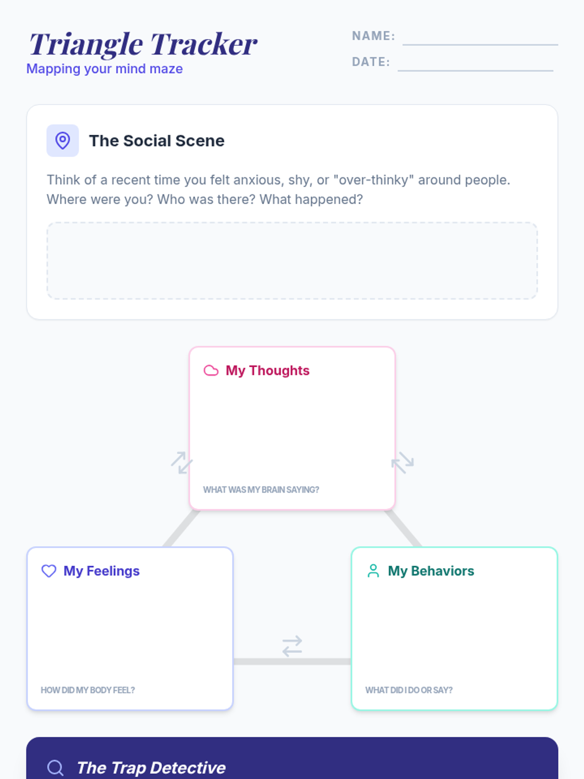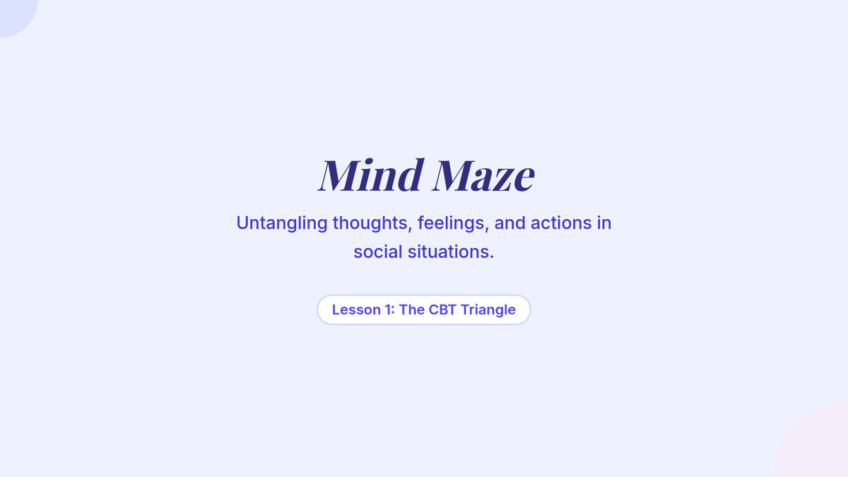 Introduction to the CBT triangle (thoughts, feelings, behaviors) with a focus on social anxiety and overthinking.