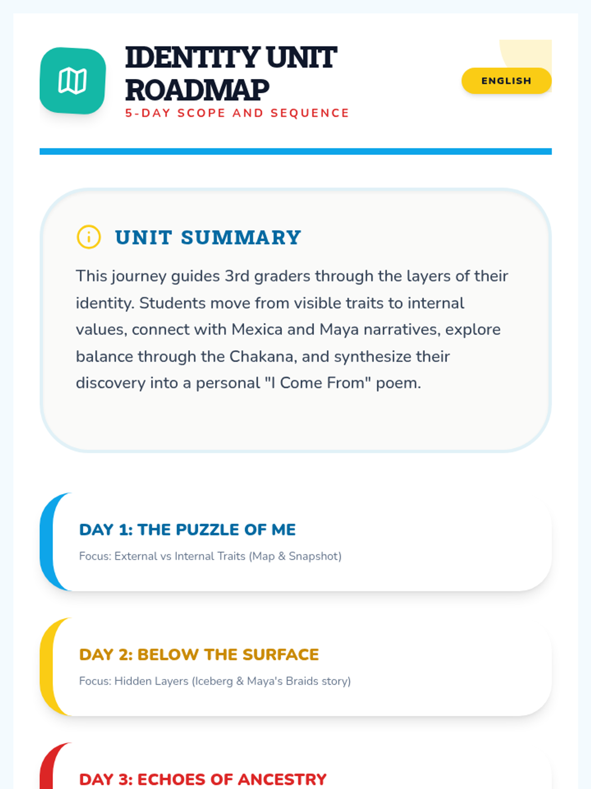 This lesson introduces elementary students to the concept of acceptance—both of themselves and others—using the metaphor of a colorful mosaic where every unique piece matters. Students will explore how to embrace differences and build a supportive community.