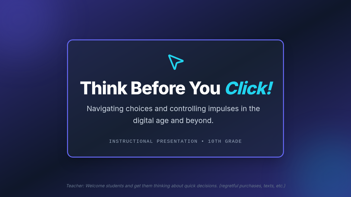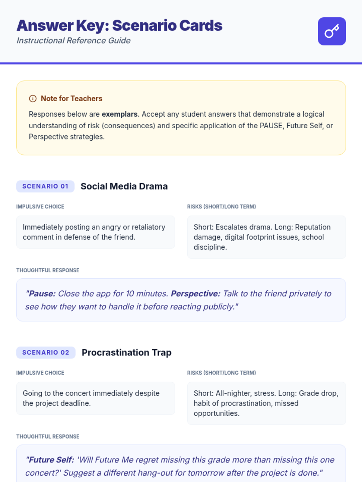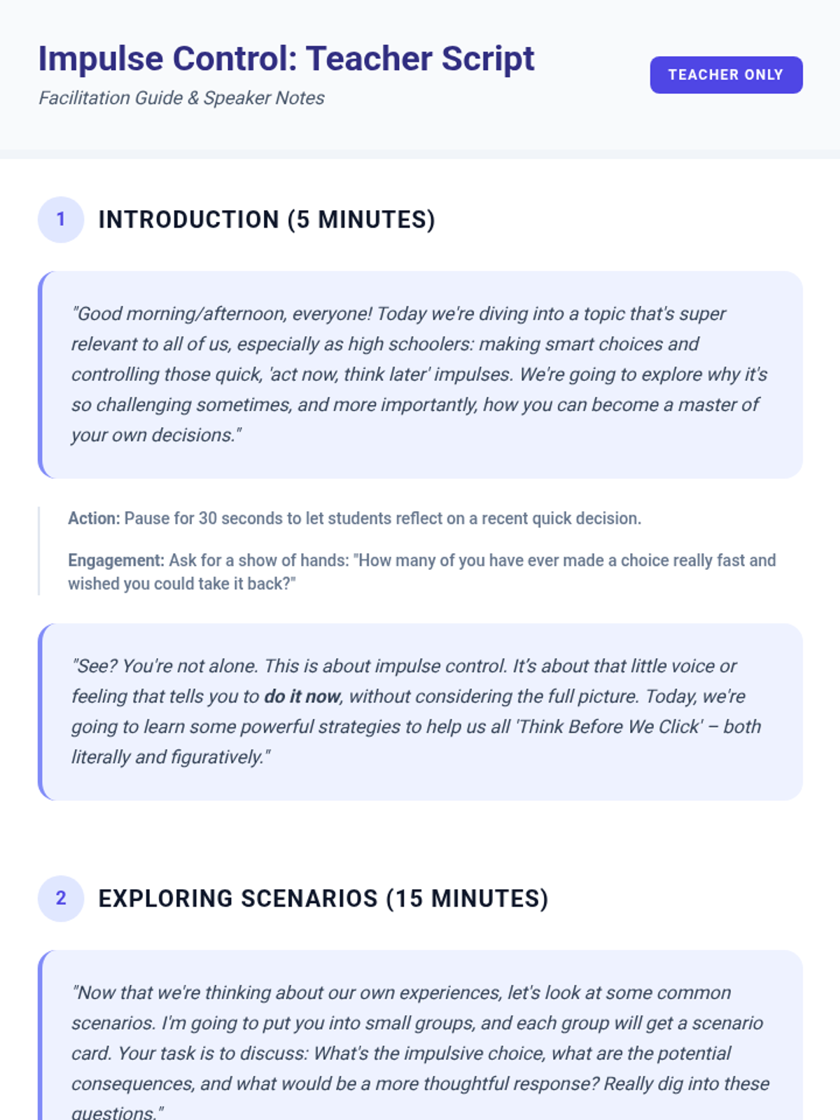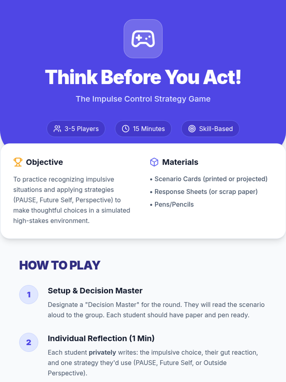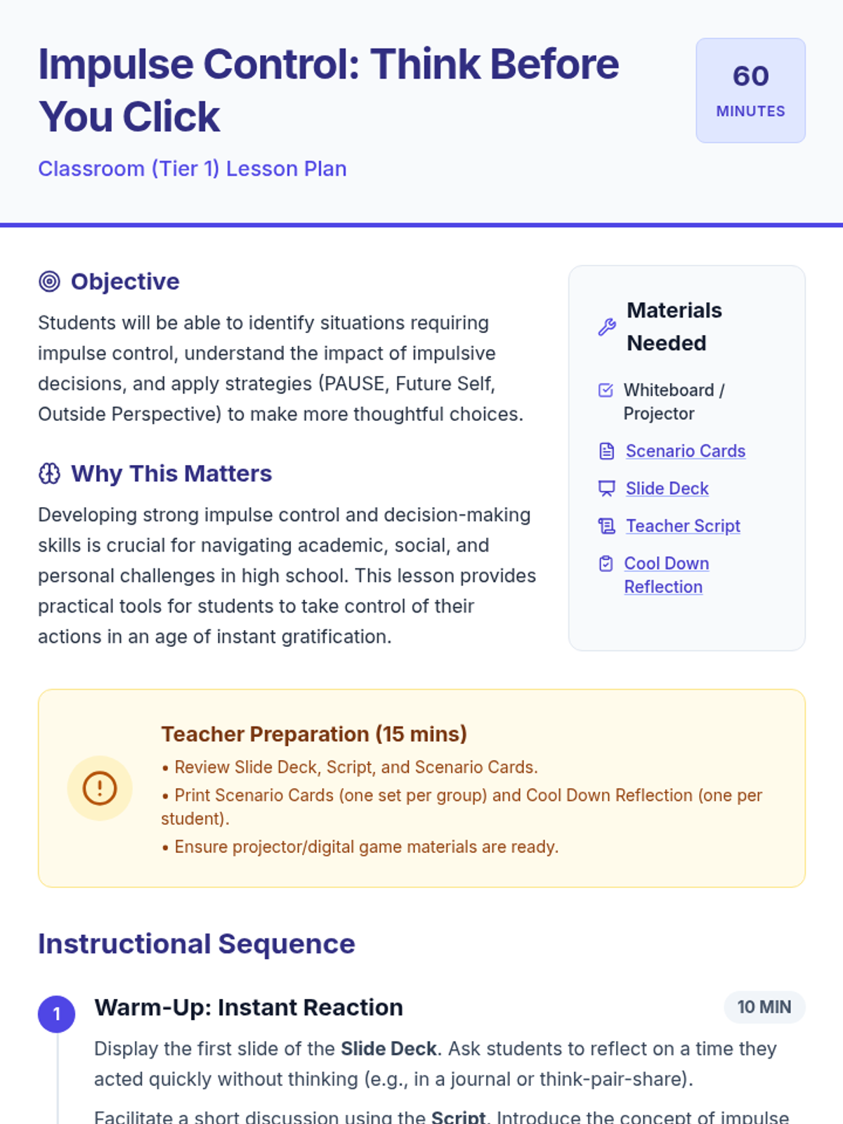This lesson helps 10th-grade students develop strategies for making good choices and controlling impulses in various situations, leading to improved decision-making skills in their daily lives.
